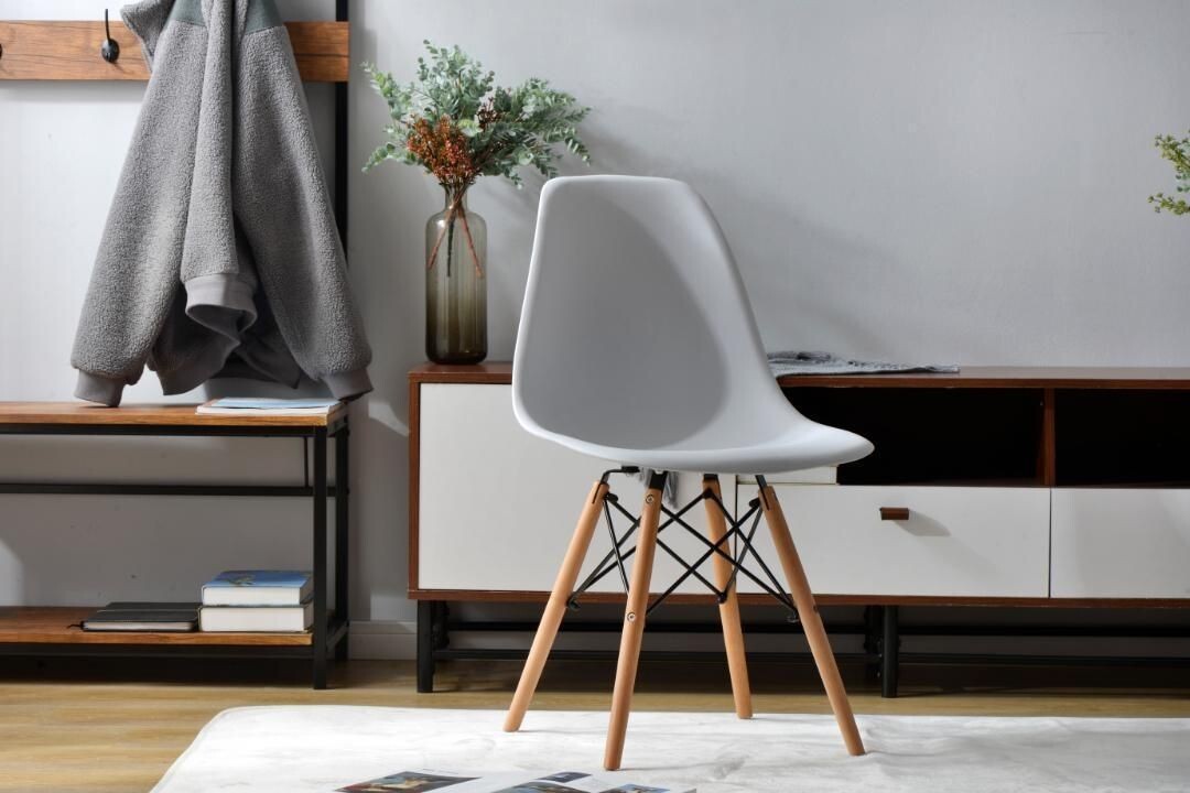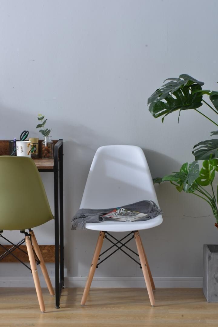 【目を引く木脚のデザイン】イームズチェアの魅力は、座面のデザインにマッチしたこの木脚にあります。思わず目を引く脚部のフォルムがチェアのデザイン性を高めます。