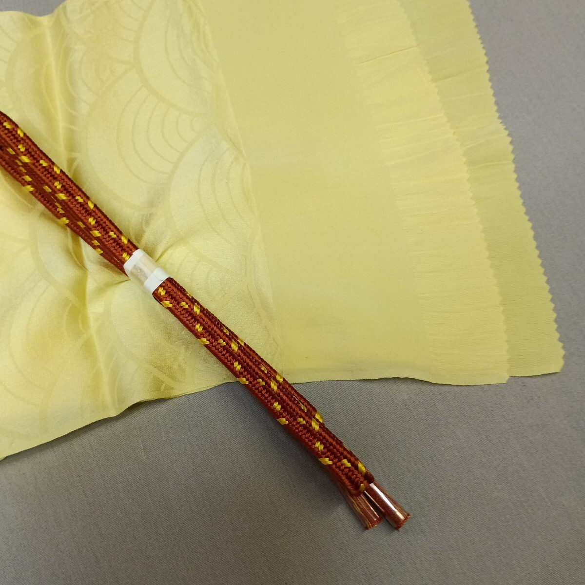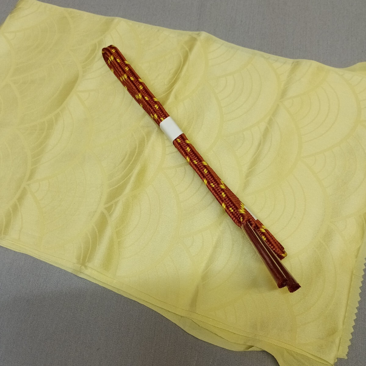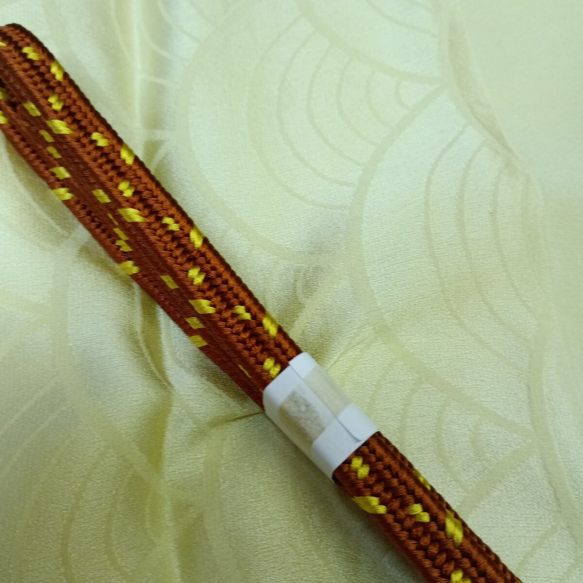 正絹の薄茶色に黄色の美しい帯締めです、、