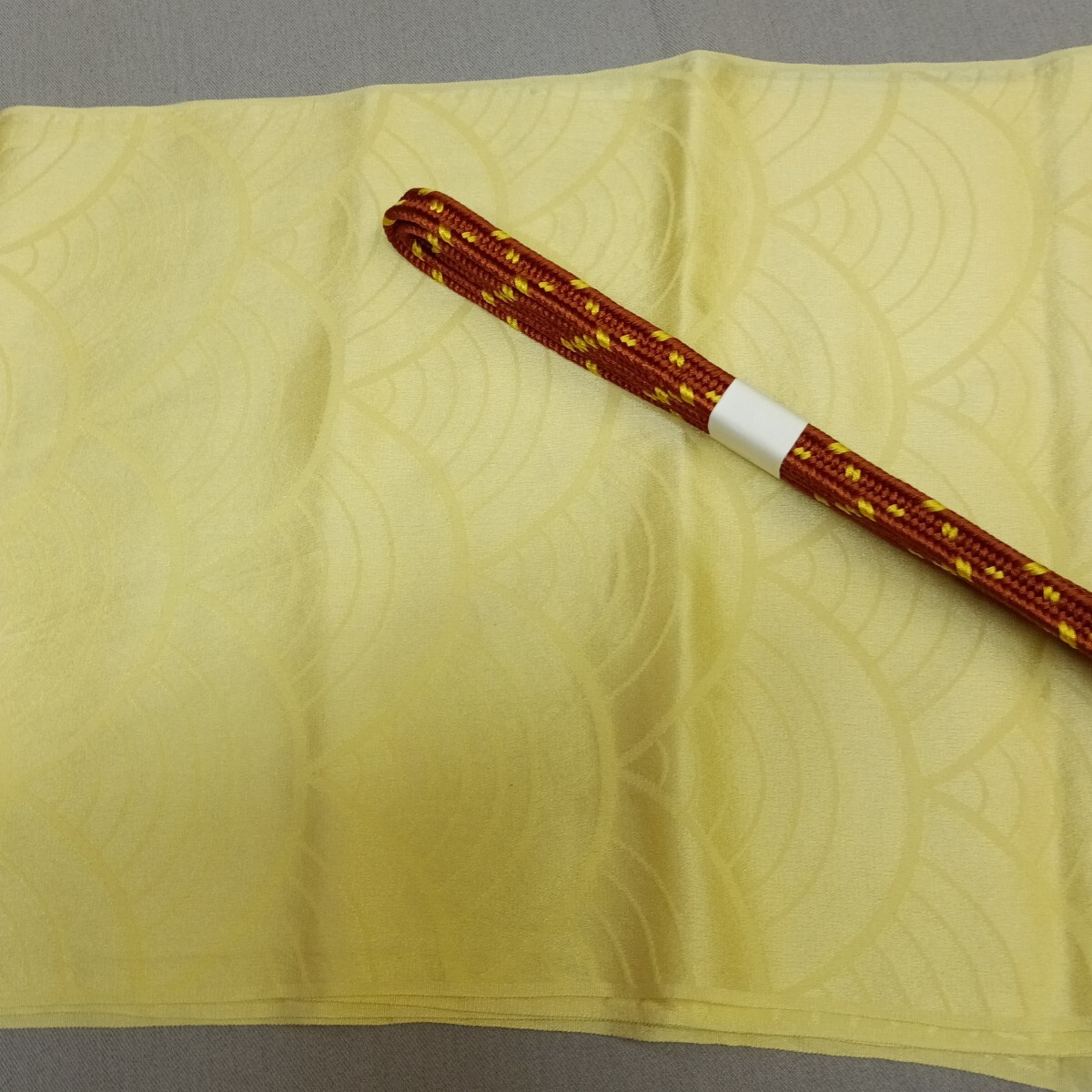 正絹の黄色に青海波の地模様が美しい帯揚げです