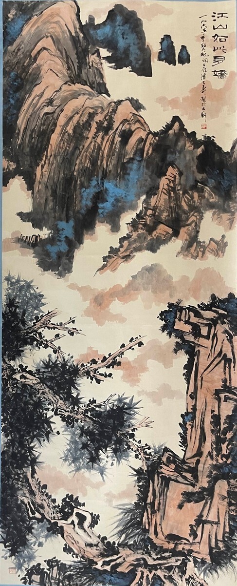 中国書画「潘天壽 江山如此多嬌図」肉筆紙本 掛け軸 墨寶妙品 書画立軸 巻き物 古美術 旧蔵出