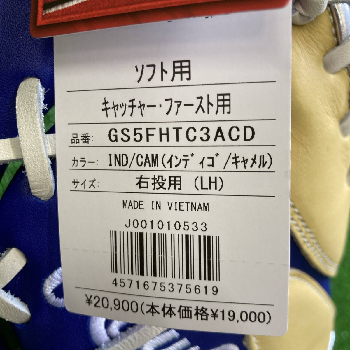 58 ローリングス 一般ソフトボール用 捕手一塁手兼用ミット インディゴ×キャメル GS5FHTC3ACD 新品