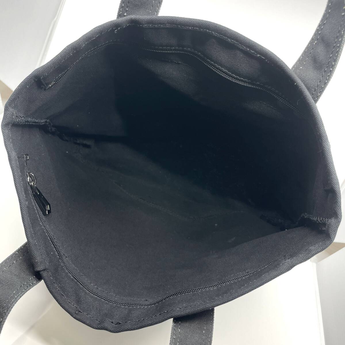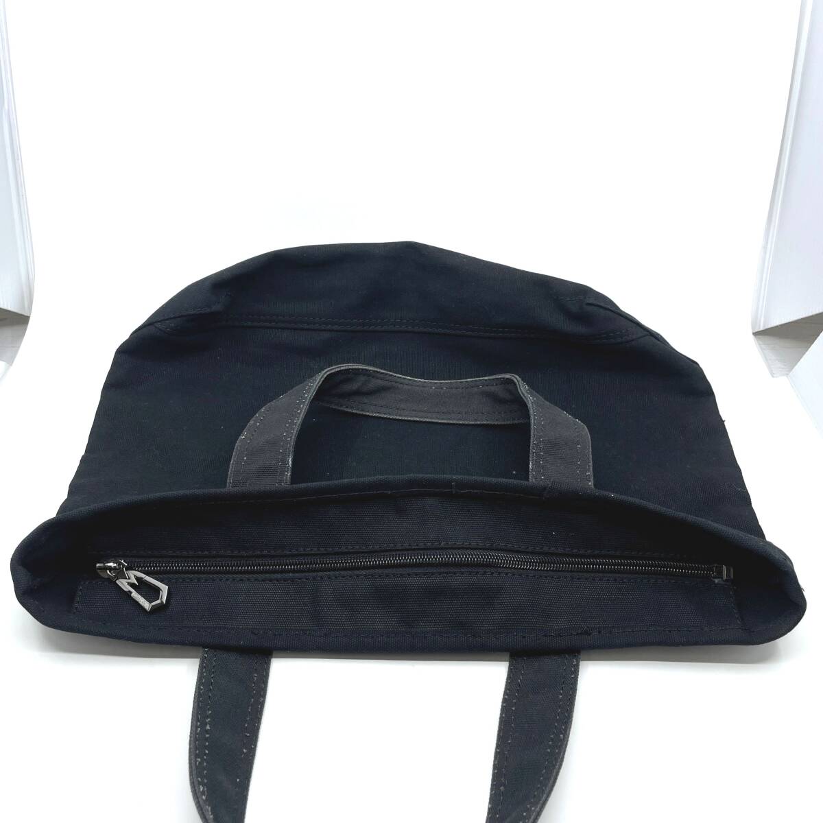 トートバッグ 肩掛け ロゴプリント シルバー金具 ブラック系 A4収納○ ファスナー