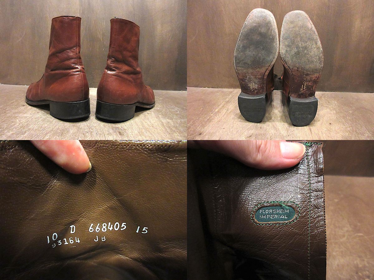 ビンテージ70's●FLORSHEIMレザーサイドジップブーツ茶size 10 D●250830n7-m-bt-27cmフローシャイム革靴メンズ靴