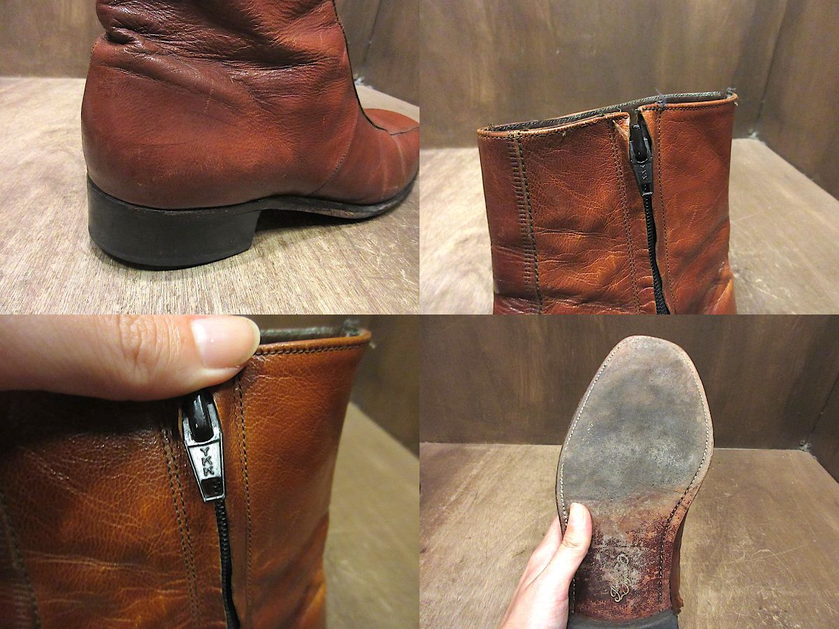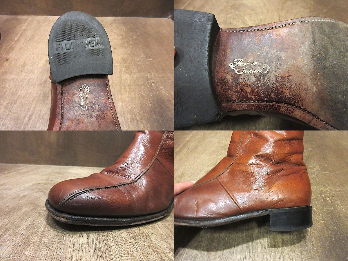 1970’s FLORSHEIMレザーサイドジップブーツ 茶 size 10 D
