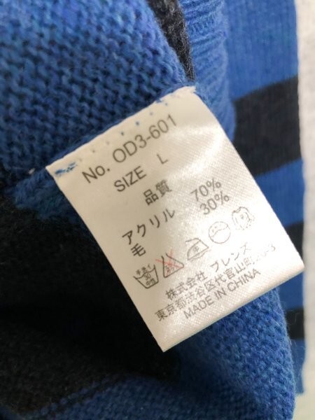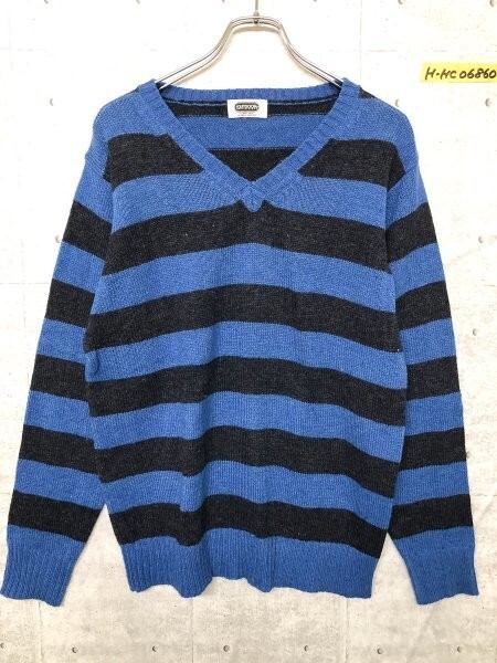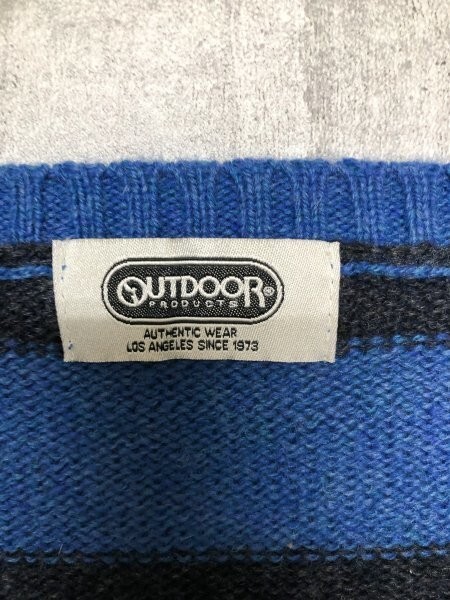 OUTDOOR PRODUCTS アウトドアプロダクツ メンズ ボーダー Vネック ニットセーター L 青紺 アクリル毛