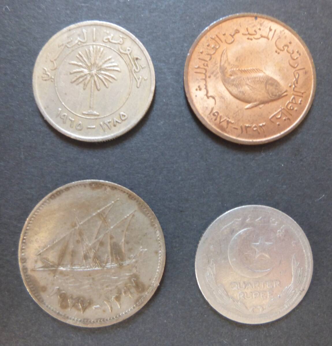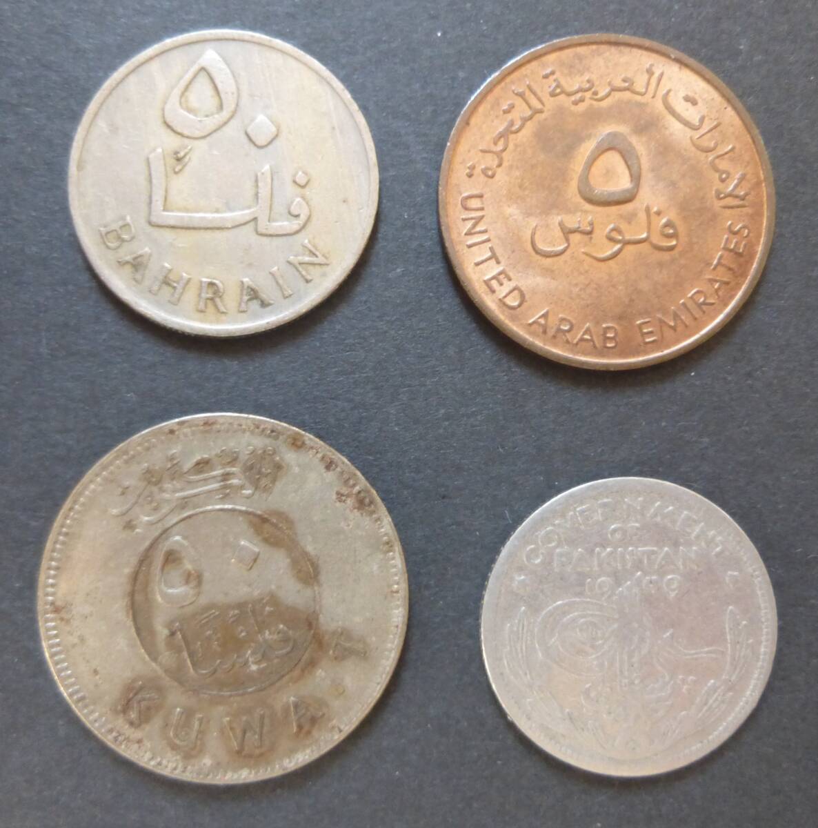 クエート、UAE, パキスタン、バーレンの旧 硬貨 各1枚です。