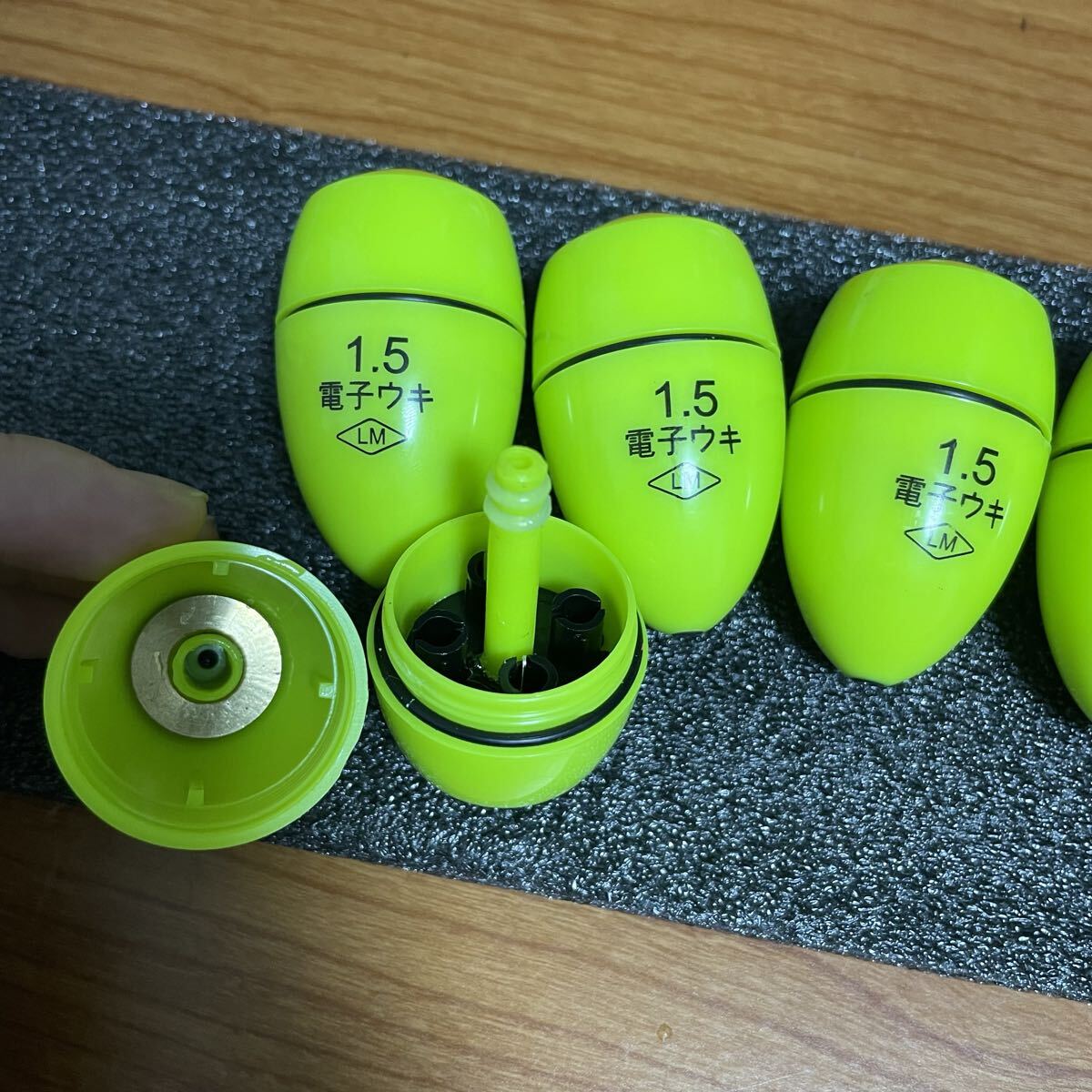 5個1.5号 黄綠色電子ウキ+ ウキ用ピン型電池 10個セット