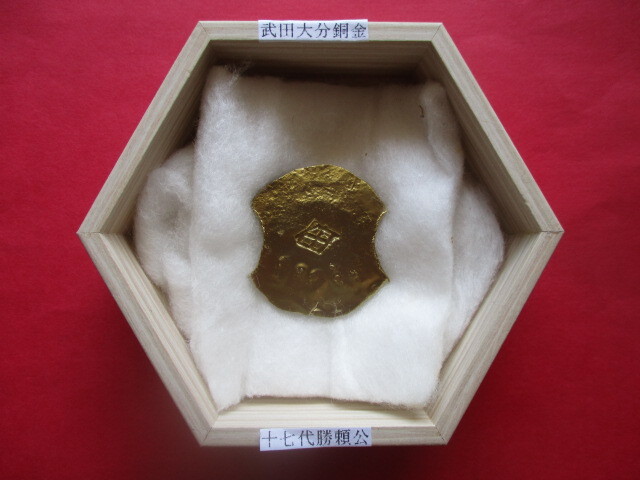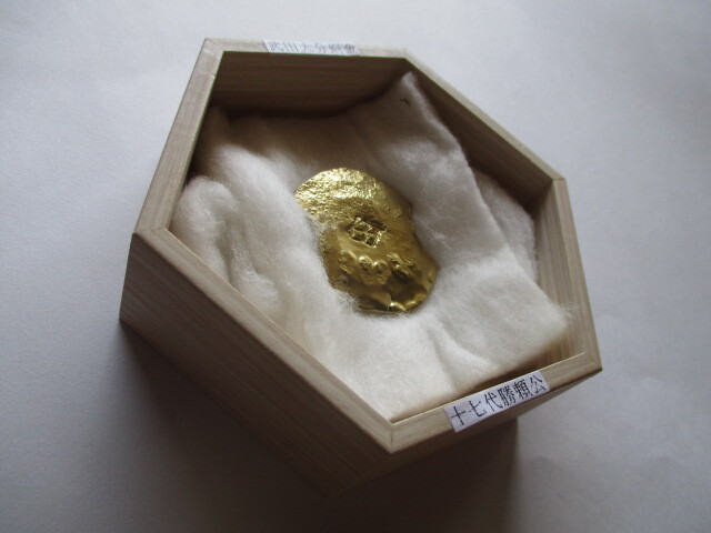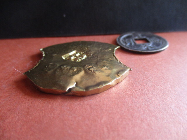 武田大分銅金 十七代勝頼公 家紋「武田菱」 刻印「鷹の爪」「芭蕉」 量目約19.1g