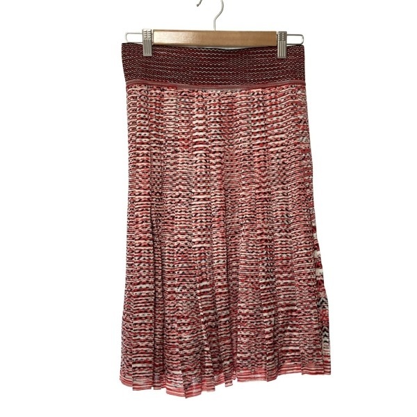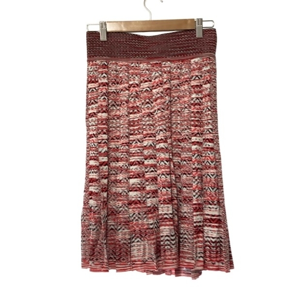 ミッソーニ MISSONI スカート サイズ40 M - レッド×黒×白 レディース ひざ丈/ニット/ウエストゴム/プリーツ ボトムス