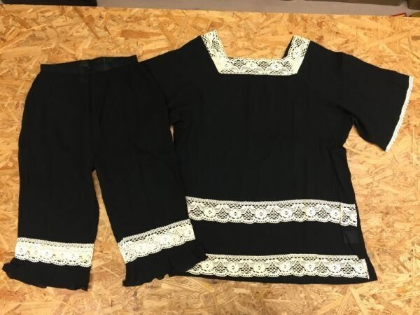 ニッセン 上下セットアップ シンプル レディース コットン100% レース スクエアネック ブラウス 半袖 ハーフパンツ Aライン M 黒です。