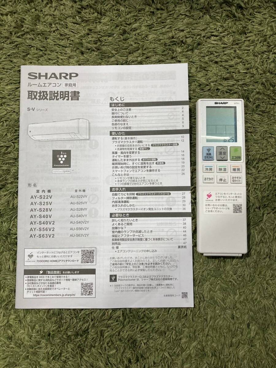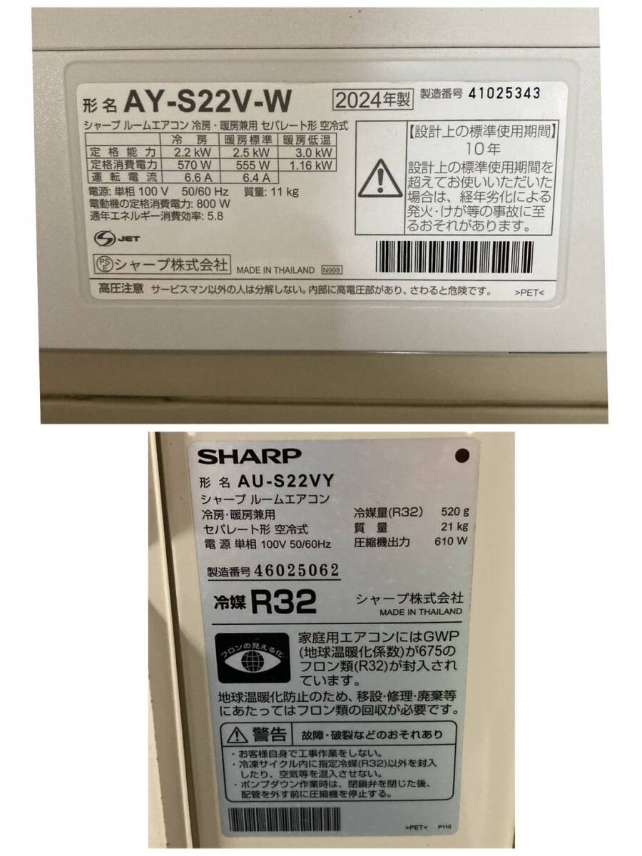 SHARP/シャープ/プラズマクラスター/ルームエアコン/冷暖房/6畳/2024年製/内機AY-S22V-W/外機AU-S22VY/0828c3 | ||||||||||||||||||||