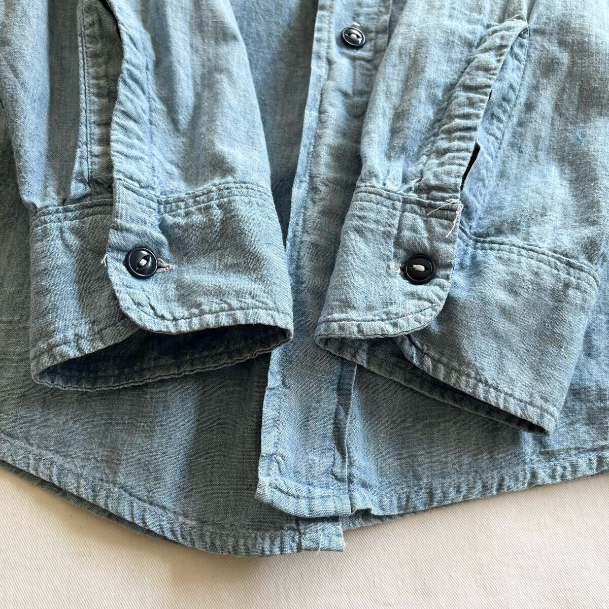 当時のワークウェアらしい無骨な佇まいに加え、程よくフェードしたサックスブルーの風合いがヴィンテージらしい魅力を放っています。