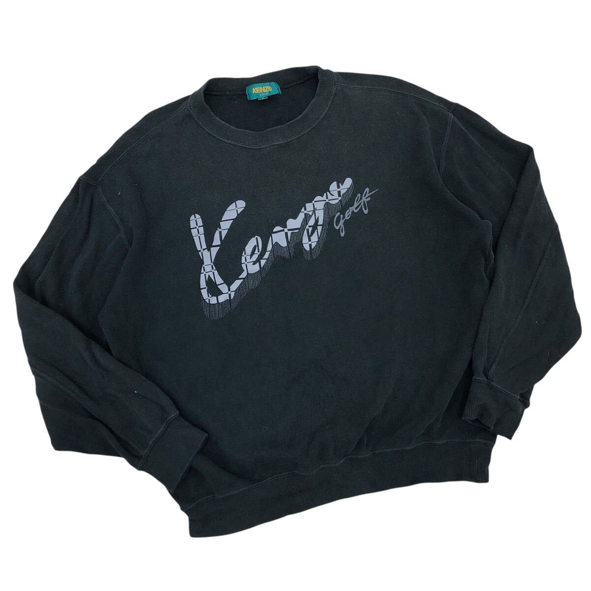 8Nm319-48 KENZO GOLF ケンゾー ゴルフ ロゴ プリント 長袖 スウェット トレーナー トップス プルオーバー ゴルフウェア ブラック 2 日本製