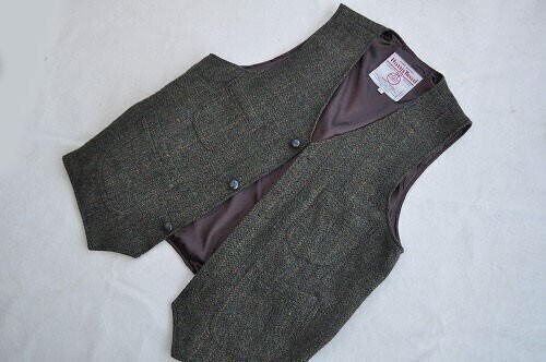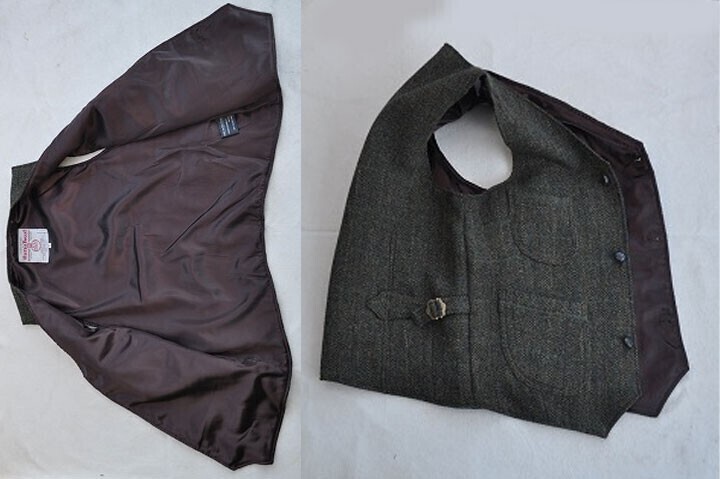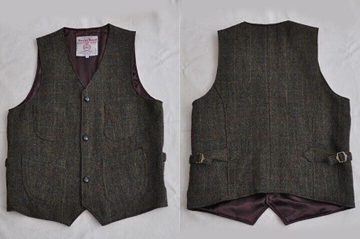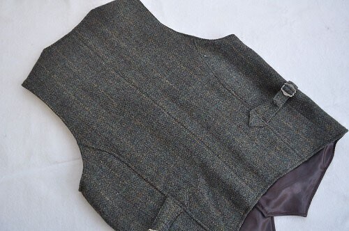 高級ハリスツイード素材を全面(前後同じ柄)に使用した贅沢なリメイクベストで