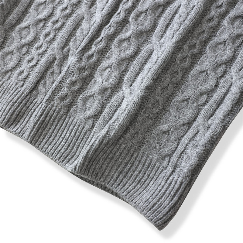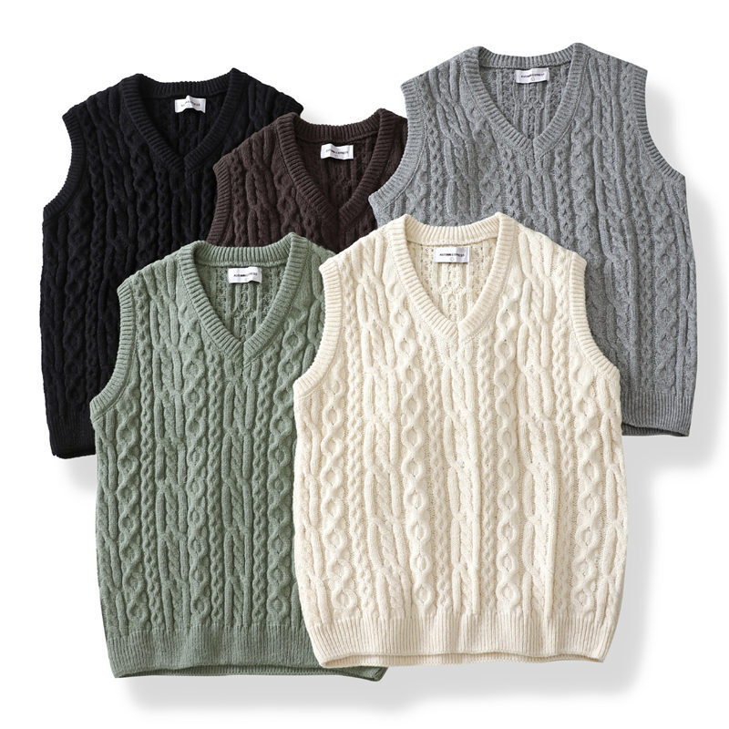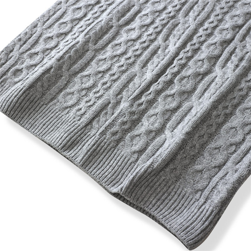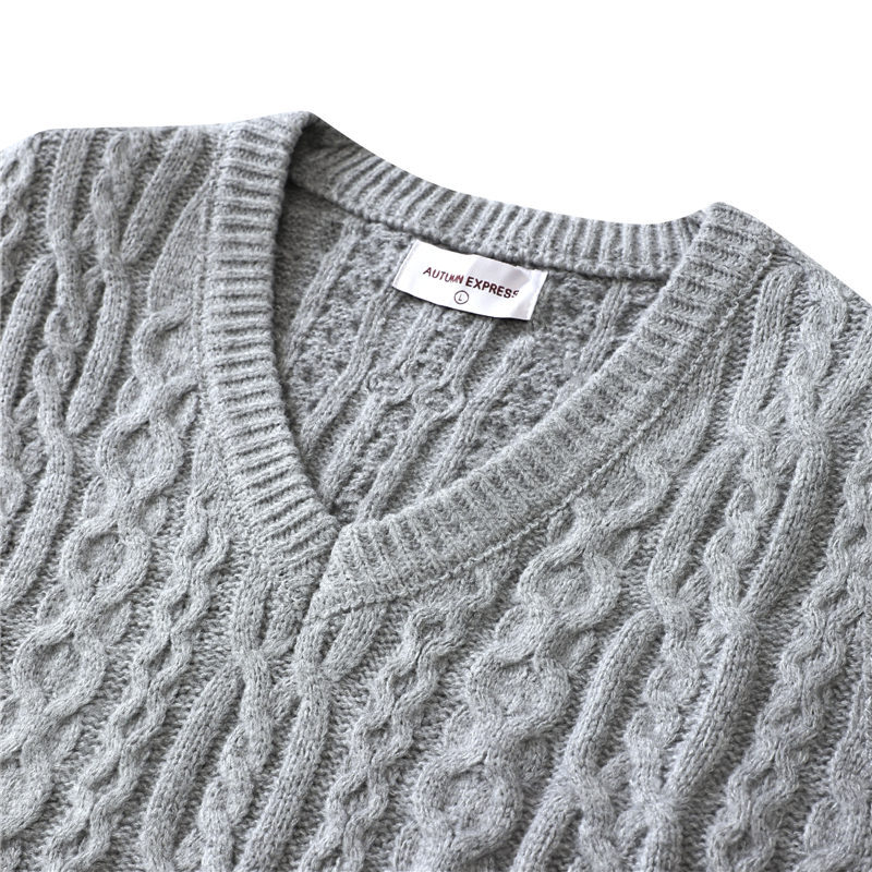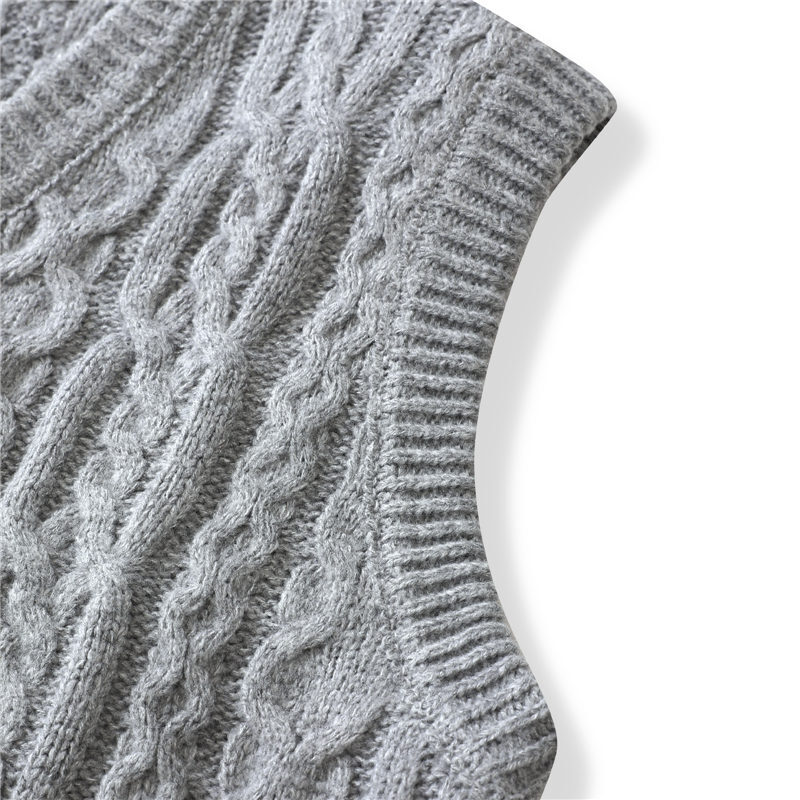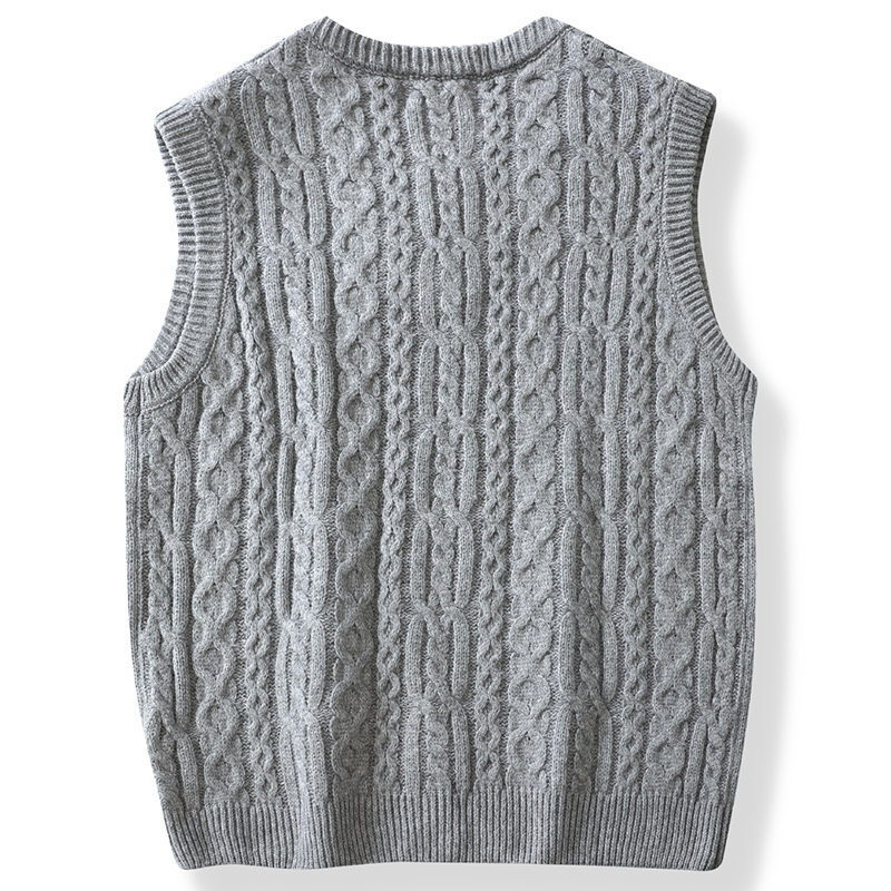Y6345-L グレー 新品 ウール混 ベスト Vネック ケーブル編みセーター フィッシャーマン 柔らか 暖かさ 秋冬 セーター メンズ トップス