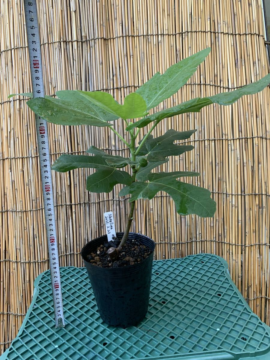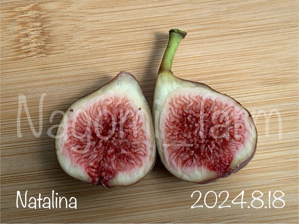 母木は、2023年12月に当オークションを通じて穂木の輸入も行っている香川県のいちじくファームから1年生苗木として導入しました。昨年、2年生の母木から写真のような完熟果が収穫でき、果実の外観・食味の特徴から品種違いの可能性は低いと考えられます。導入元のコメント通り、小さな実ですが濃厚な食味でした!