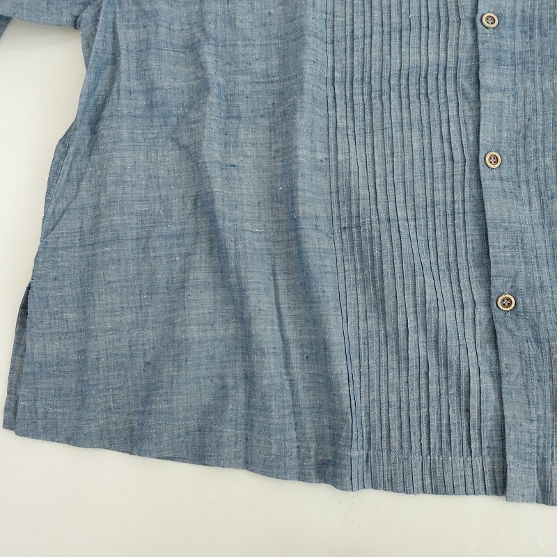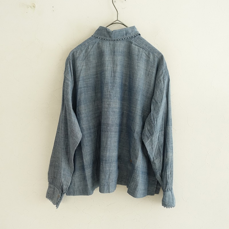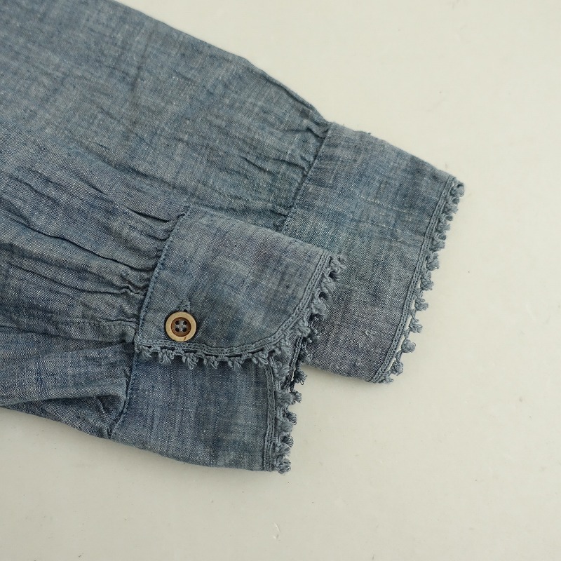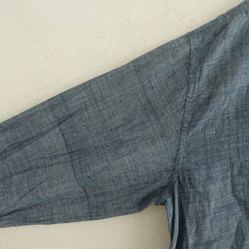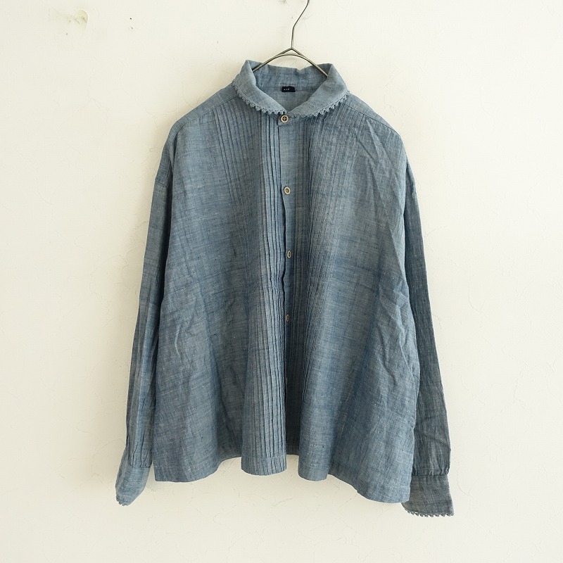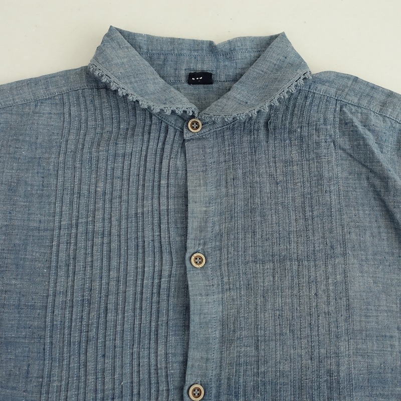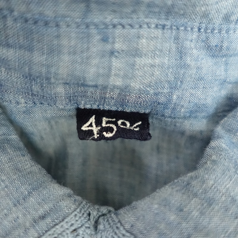 | R45RPMのインドカディのピンタックブラウス 藍です。カラーはインディゴブルーで、薄手のシャンブレー地で仕立てられております。ピンタック入りでややワイドなシルエットになっており、両裾にスリット入り、フロントボタン開閉で着脱できます。バック右腰に「R」のブランドロゴ刺繍があしらわれており、定価(メーカー希望小売価格)47,300円 税込みの商品です。 |