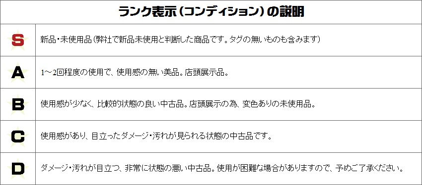 | 商品説明 | 比較的使用感は少ないですが、打球面に小さな凹みがみられます。 | ||||||||||||||||||||||