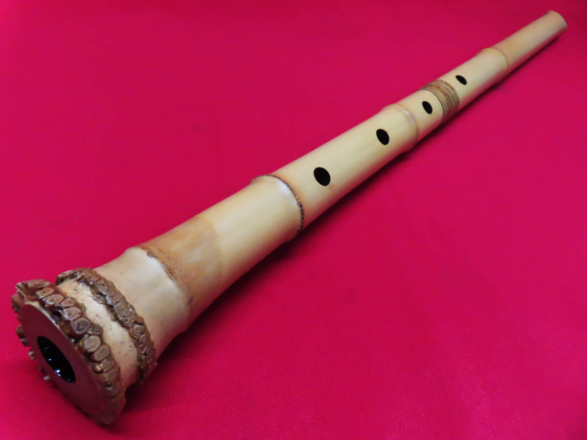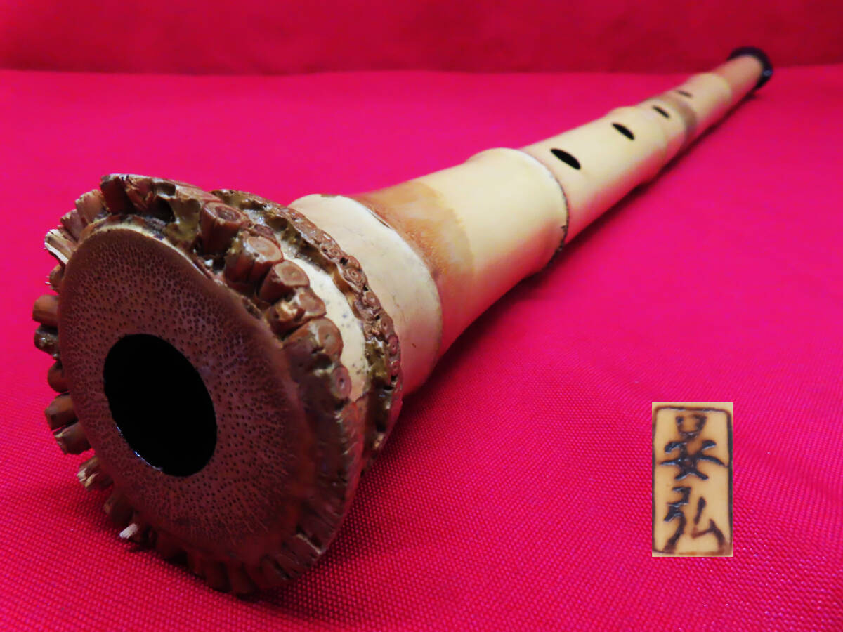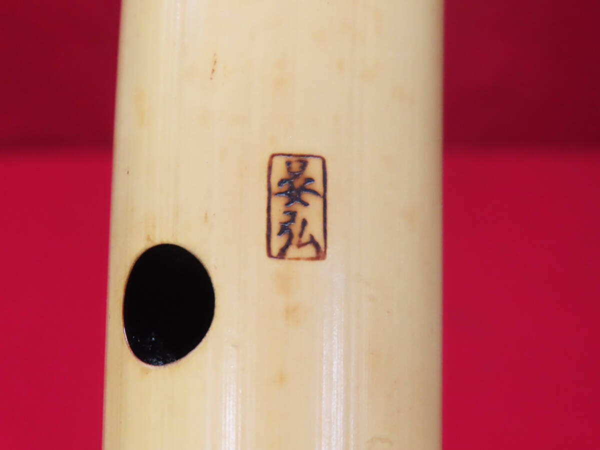 修繕跡あり 竹尺八 琴古流 在銘 晏弘 一印 籐巻き 五孔 中継ぎ 全長約67cm 重量約388g 和楽器 管楽器 管理7k0828N-H05