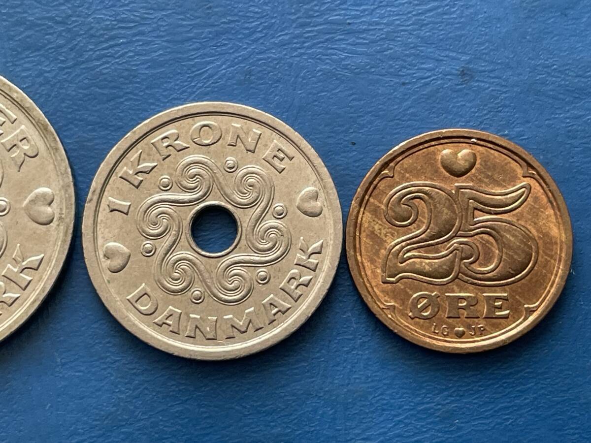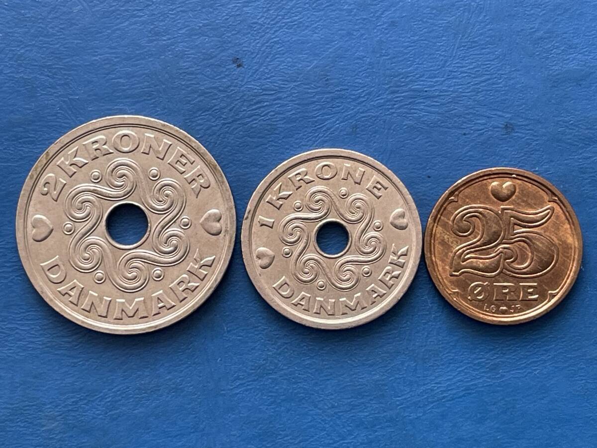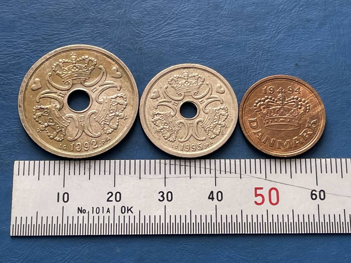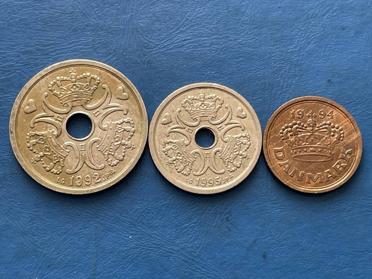 ☆デンマーク貨幣【ハートデザインのデンマークコイン3枚:1992年2クローネ/1995年1クローネ/1994年25ore硬貨各1枚 コレクター放出品】Aug 1152☆ | |||||||||||
