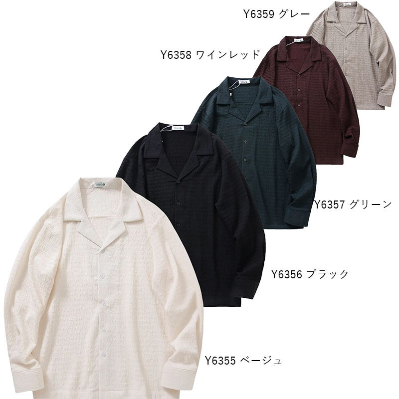 Y6355-2XL ベージュ 新品 シアサッカー オープンカラー テンセル 軽やか 長袖 開襟 メンズ 爽やか 秋 ノンアイロン カジュアル トップス