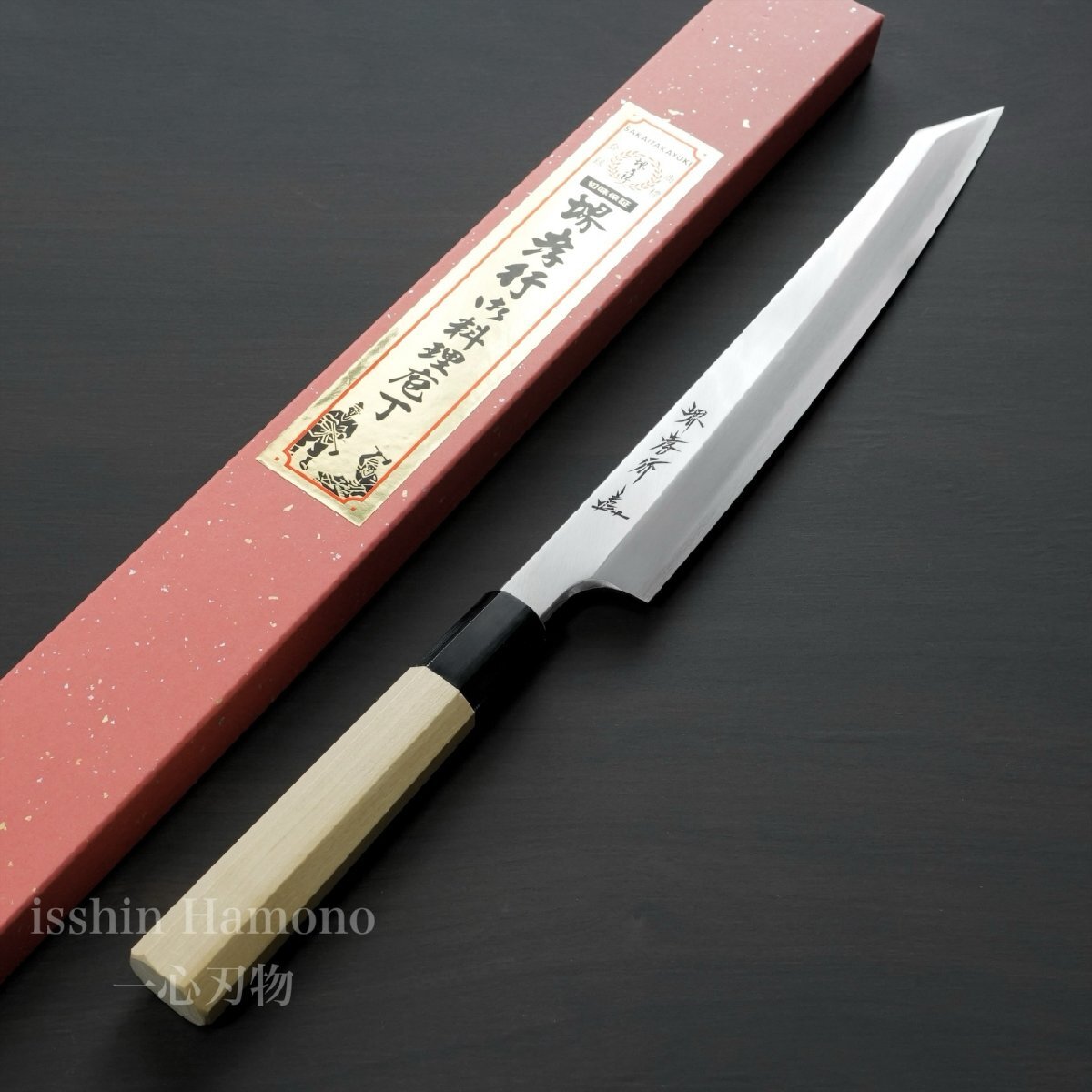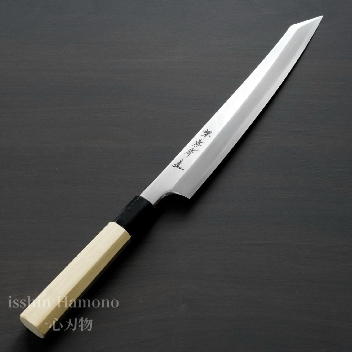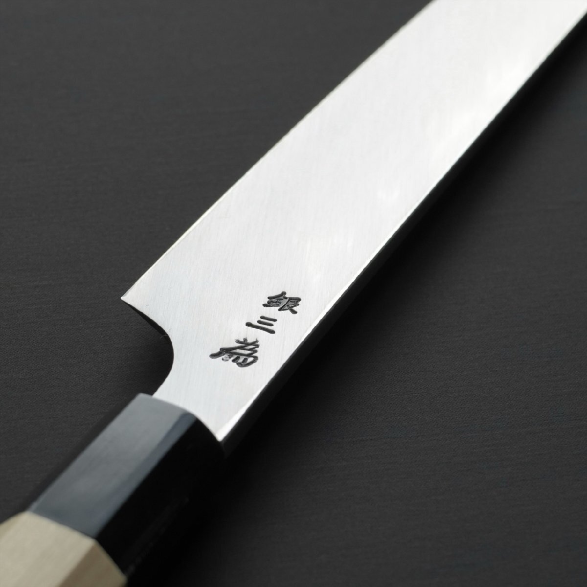 銀三鋼を使用した本職用モデル。鋼製に劣らない切れ味を実現し多くのプロの要望に応えている新世代の和包丁です。