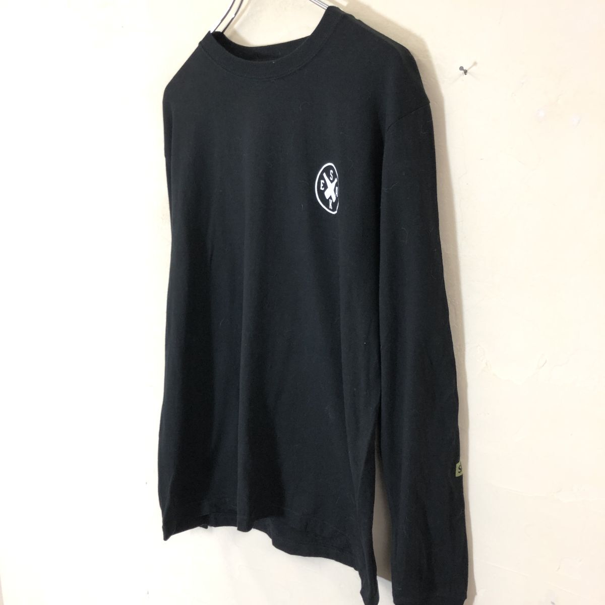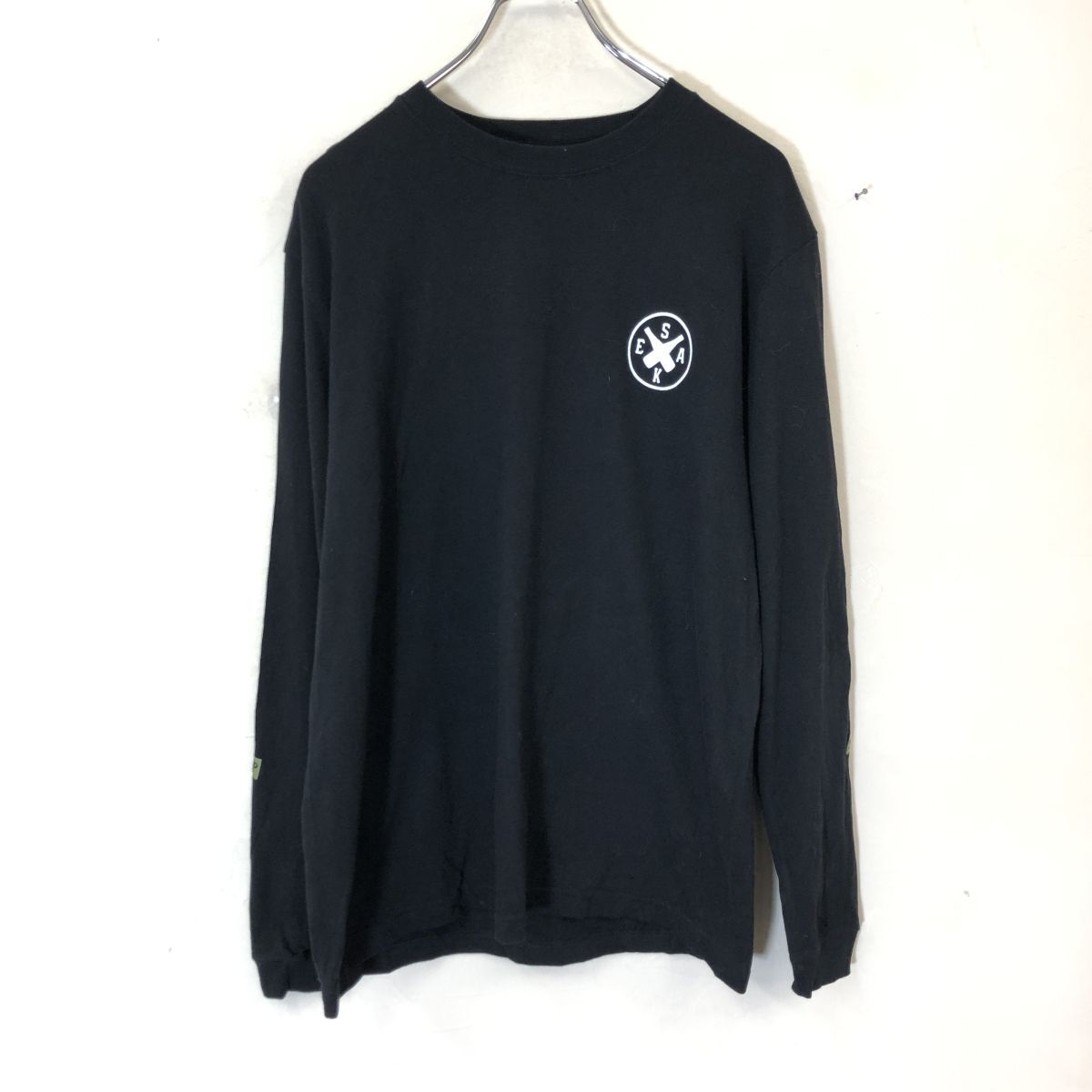 2K1442-O◆SAKEPOP 酒ポップ 長袖Tシャツ ワンポイントロゴ バックプリント 袖口リブ◆sizeL ブラック コットン