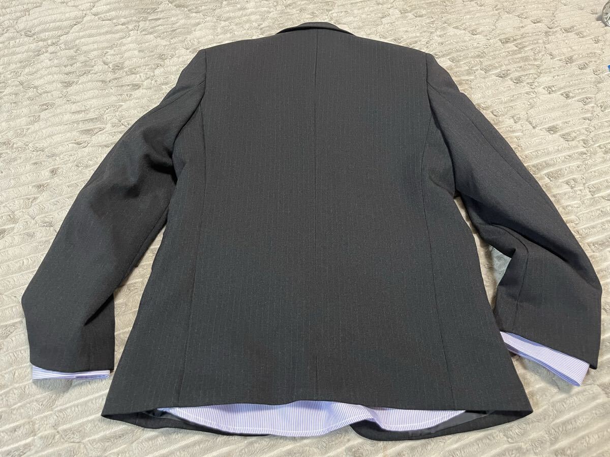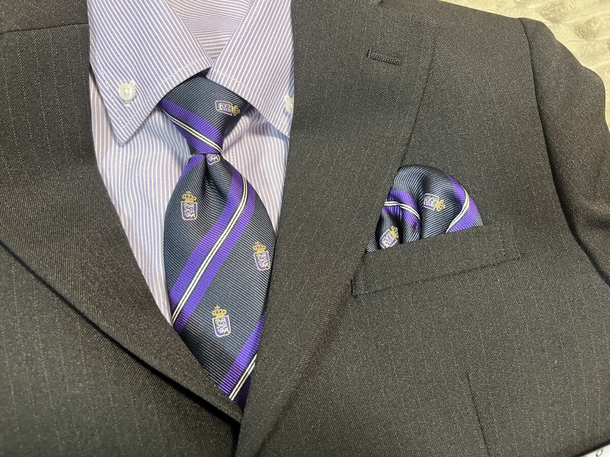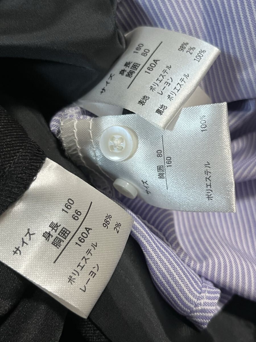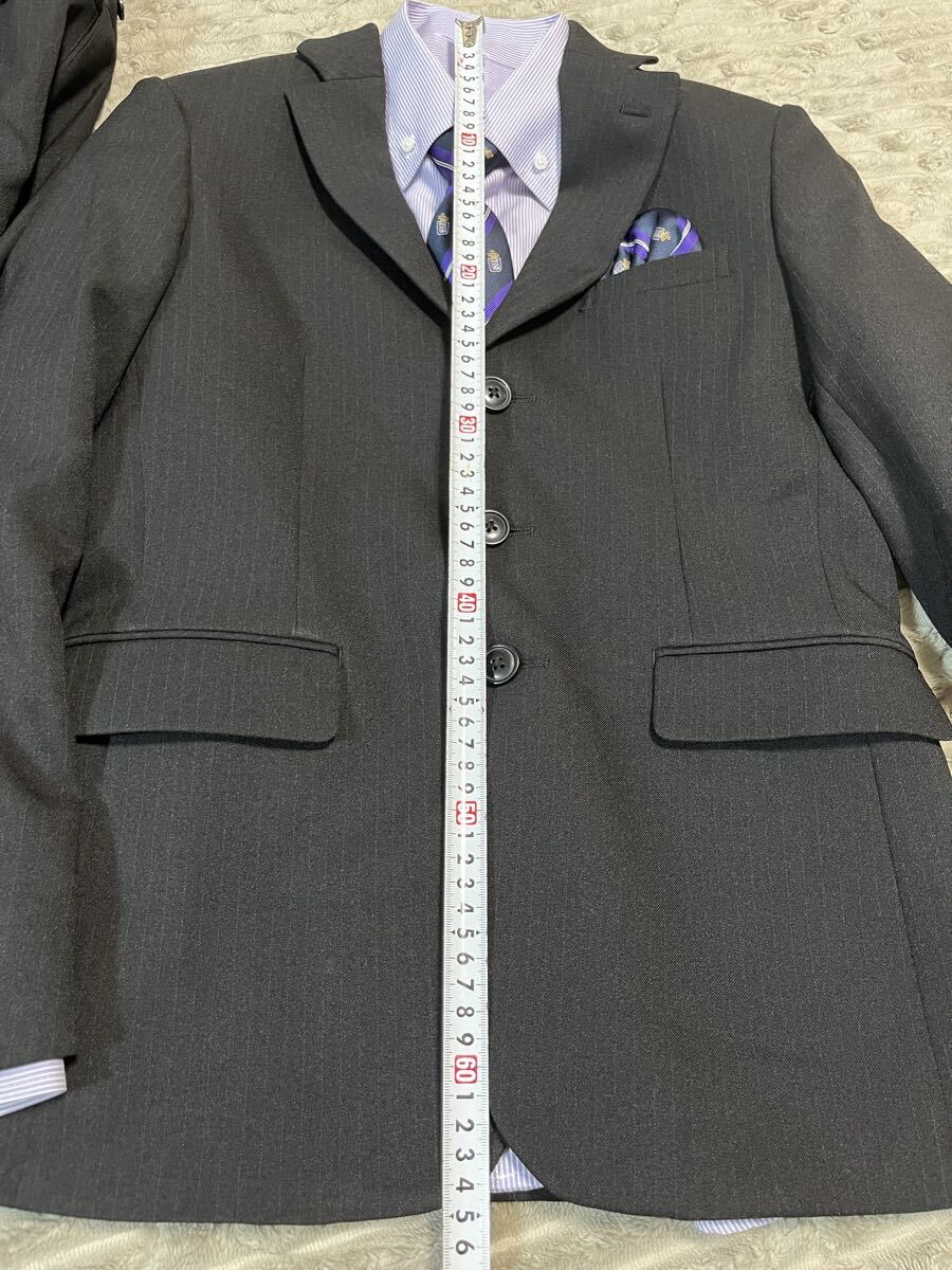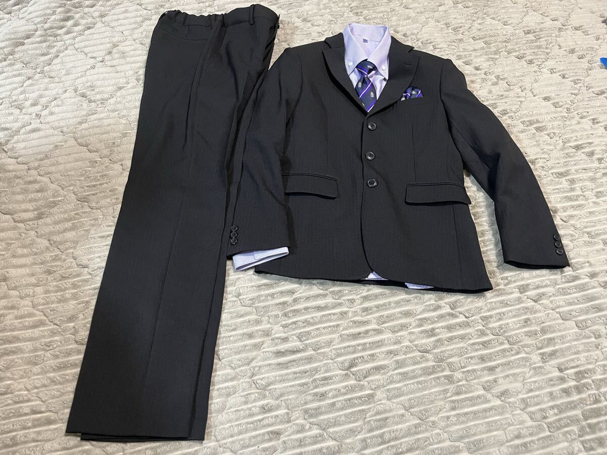ジャケット、シャツ、ズボン、ネクタイ、ポケットチーフの5点セットです。