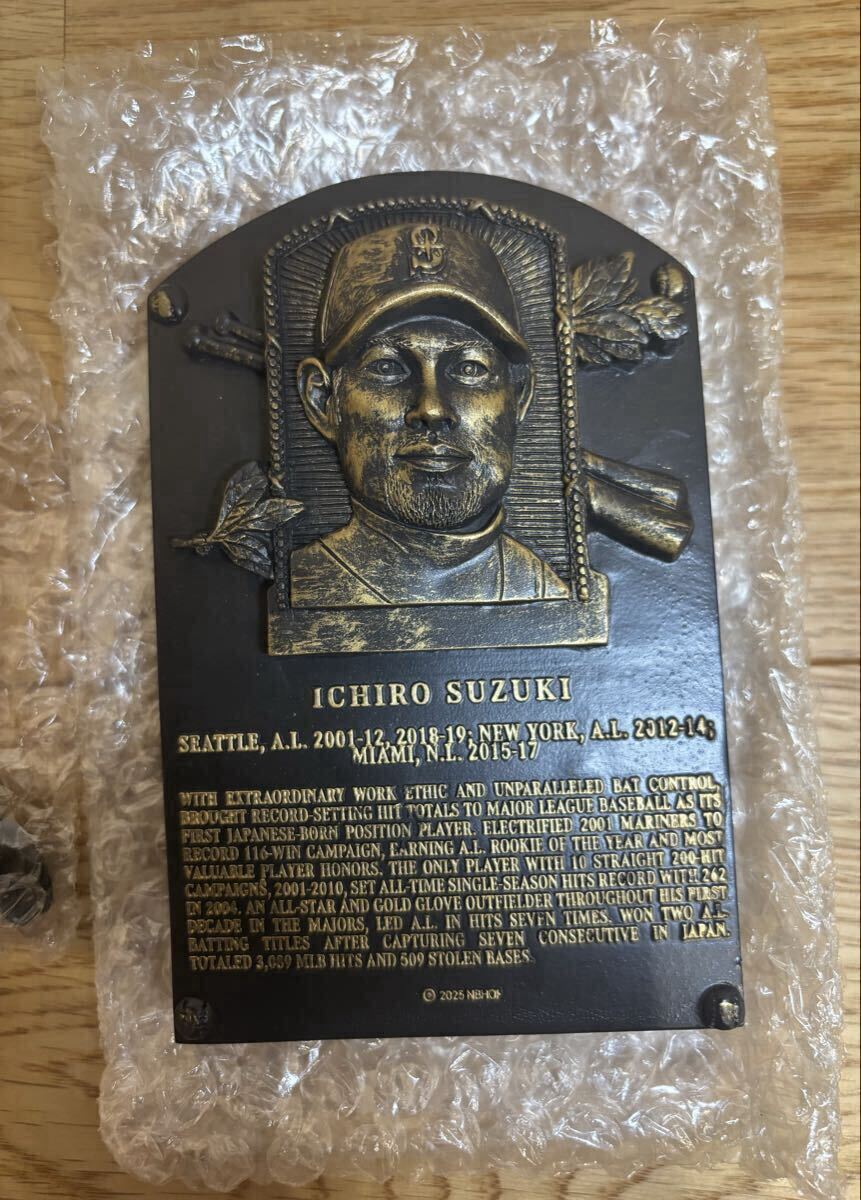 イチロー選手がMLBの殿堂入りを果たした後のタイミングで、 2025年8月10日にシアトルのTモバイルパークで球場配布された当日限定のイチロー選手のMLB殿堂入り記念プラーク(盾)です!!