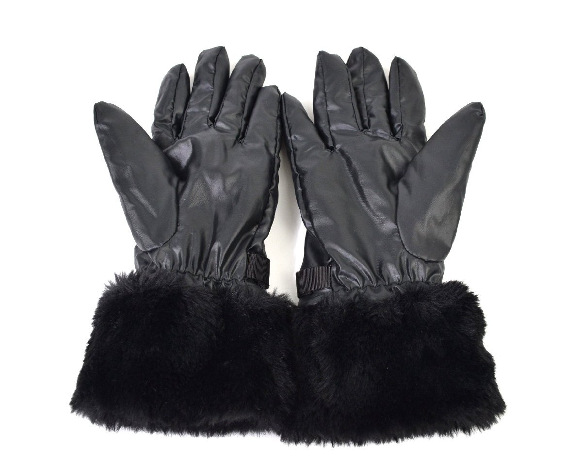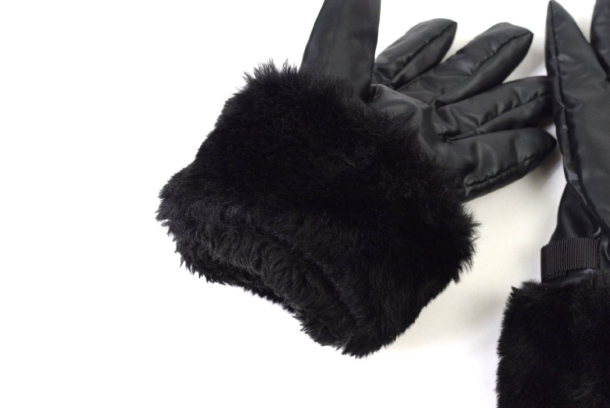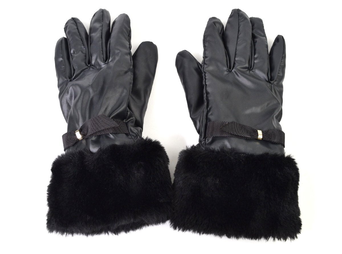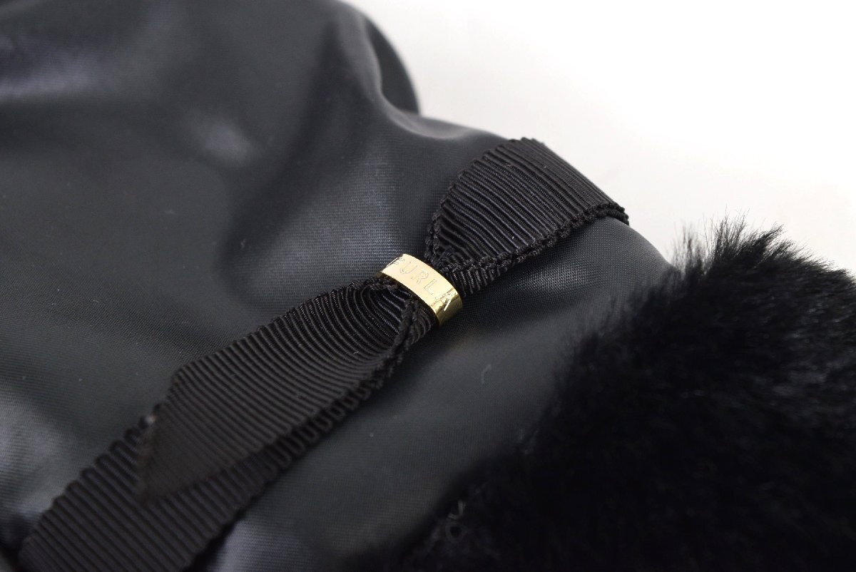 2336-25Q0037★フルラ FURLA 美品★防寒 ナイロン ボア 手袋 グローブ ファー付き 黒 ブラック 撥水加工 裏起毛 リボン