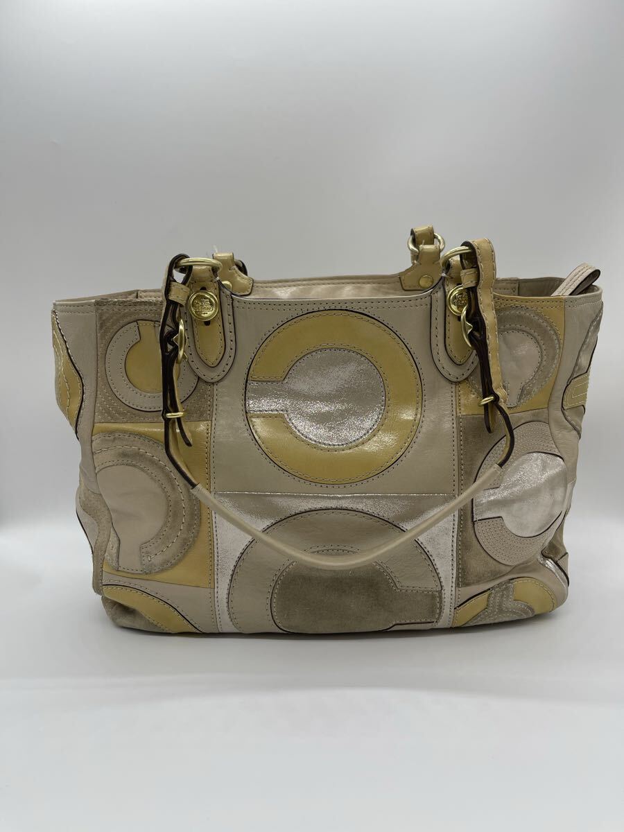 【正規品・付属品あり】COACH コーチ トートバッグ パッチワークデザイン ベージュ系 マルチカラー No.E1069-15748 保存袋付 1円スタート