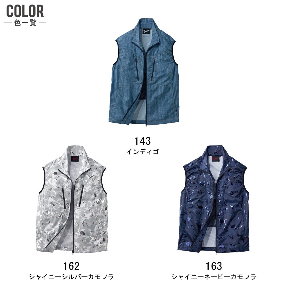 光沢感のあるカモフラ柄とデニム柄をプリントしたカジュアルテイスト空調服。