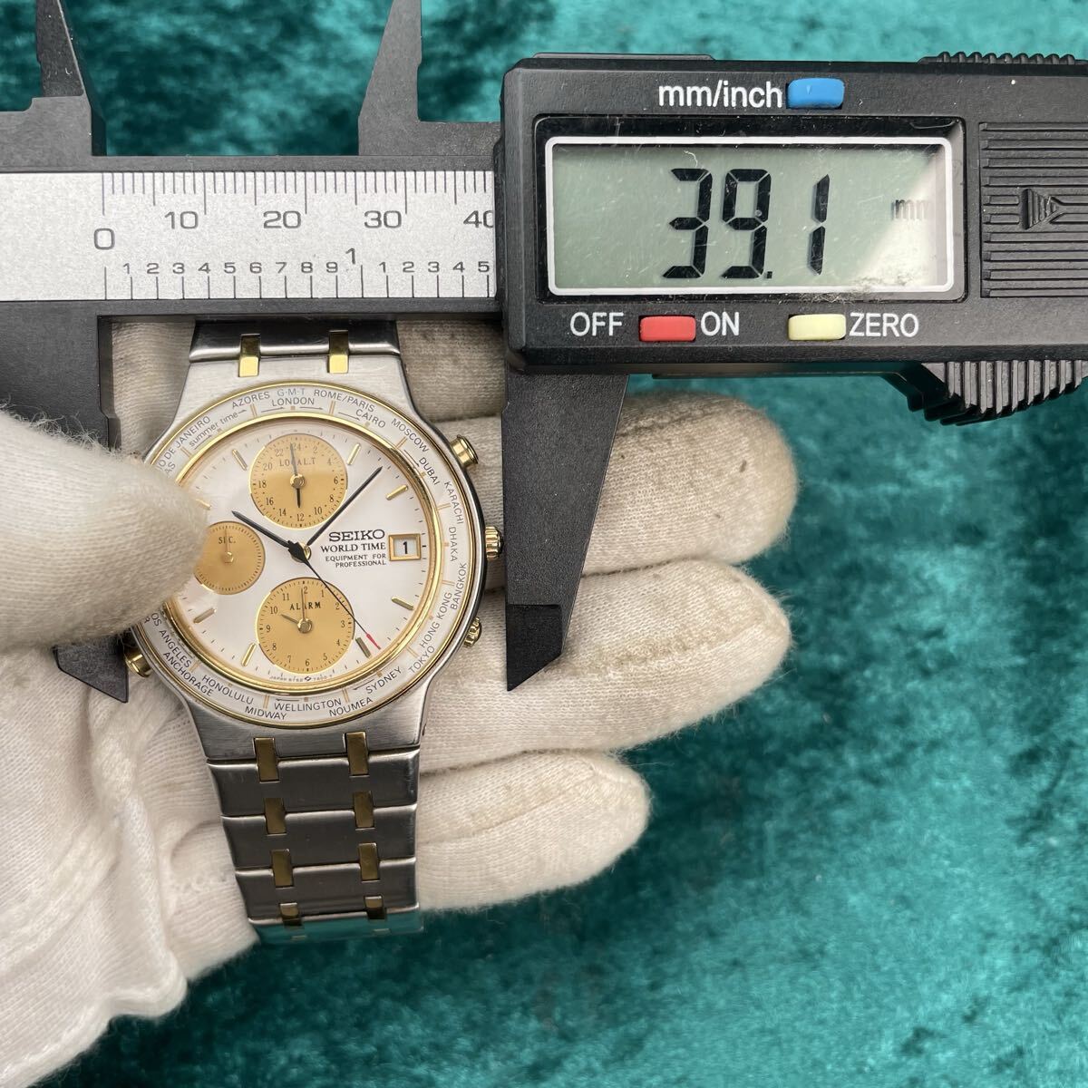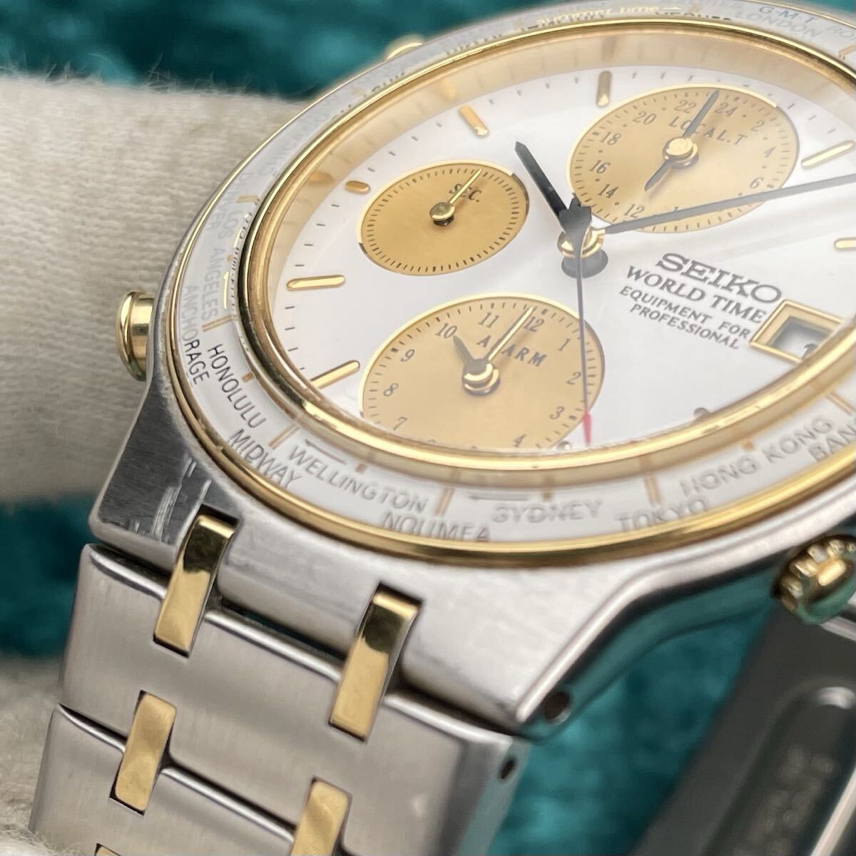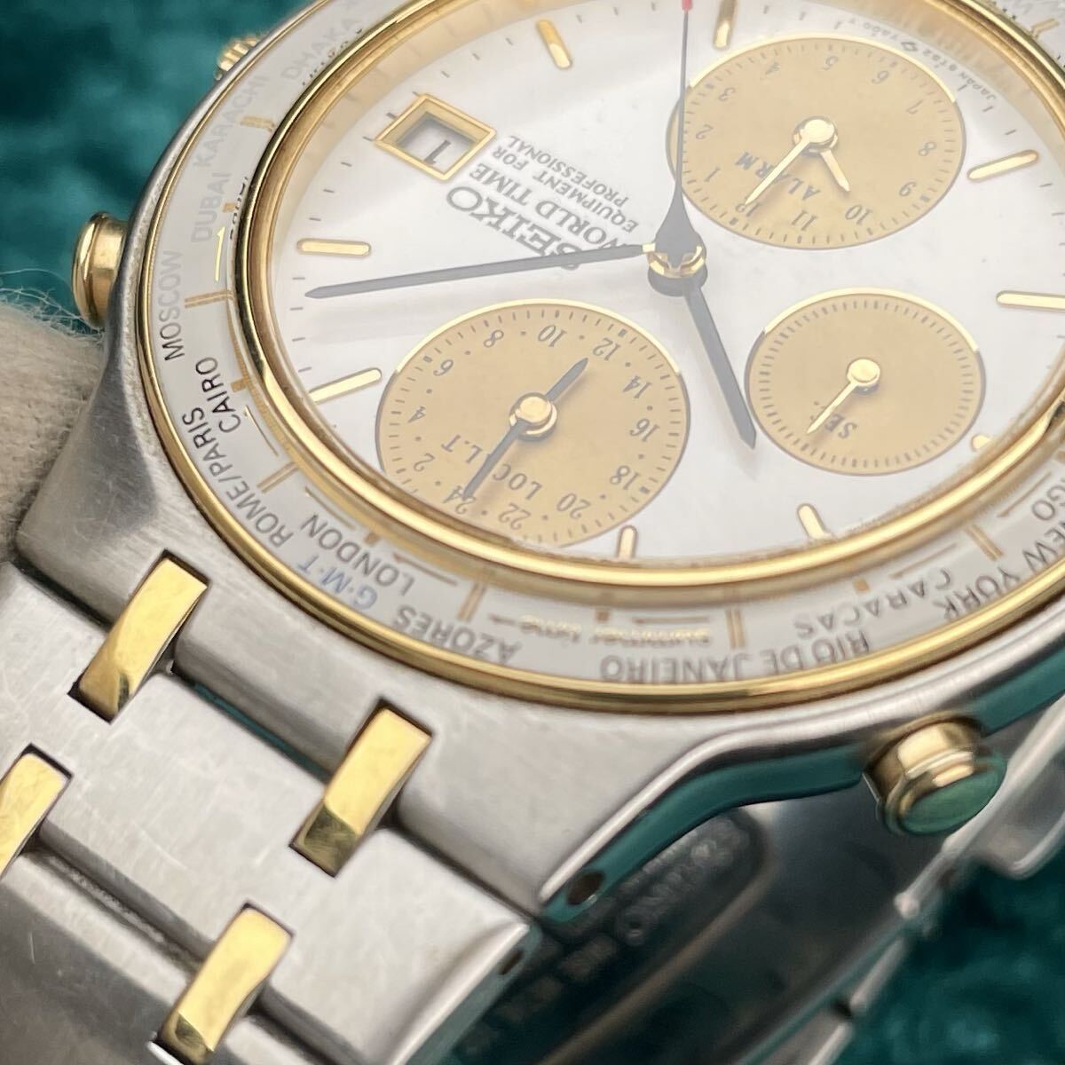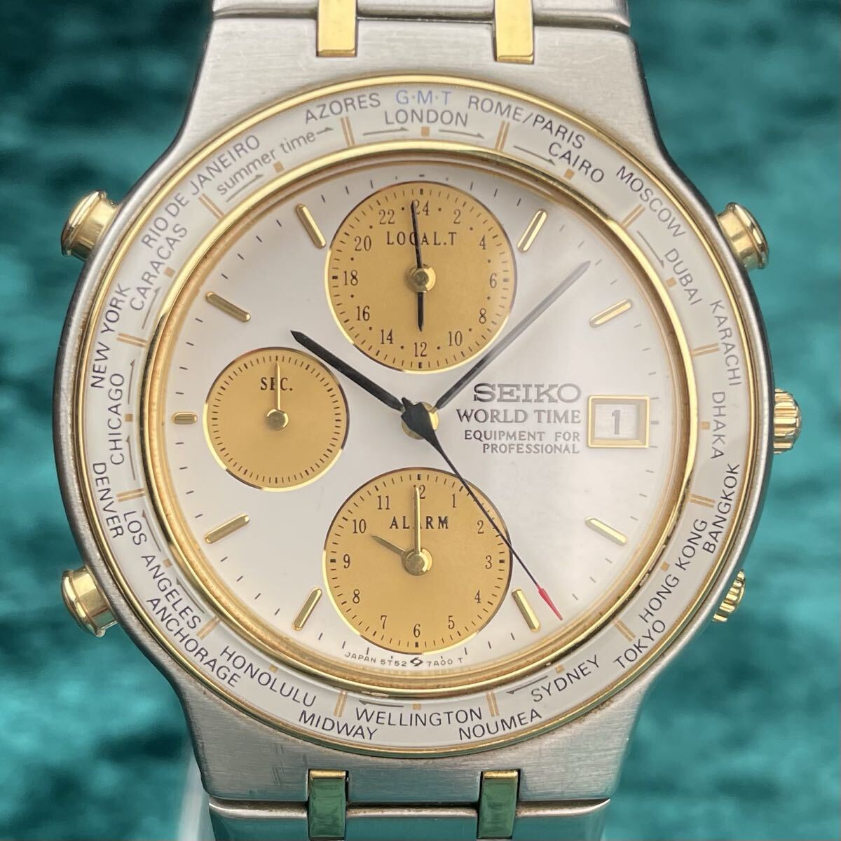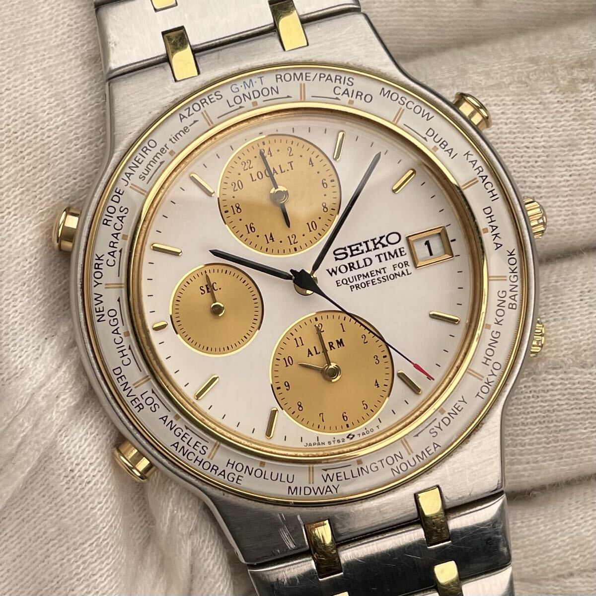 ビンテージ精工舎SEIKO セイコー WORLD TIME 5 T52-7A00 ゴールドコンビ 文字盤 ガラス綺麗 オリジナルブレス クロノグラフ ワールドタイム