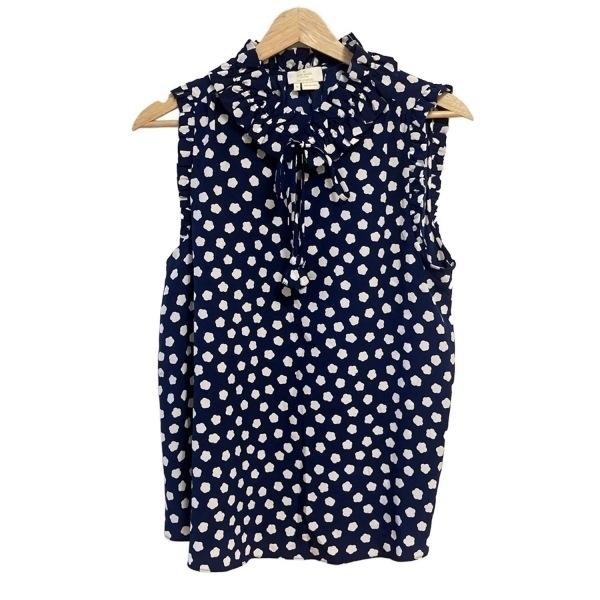 ケイトスペード Kate spade ノースリーブカットソー サイズM - ネイビー×白 レディース フリル トップス