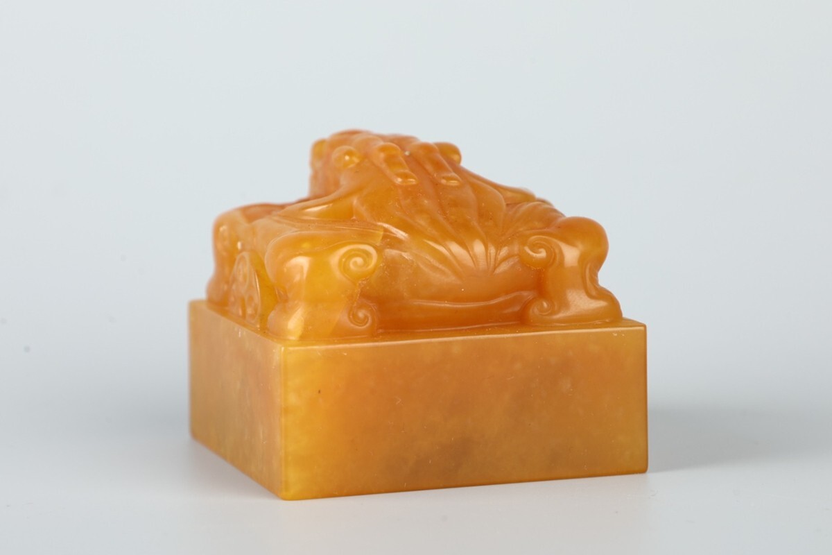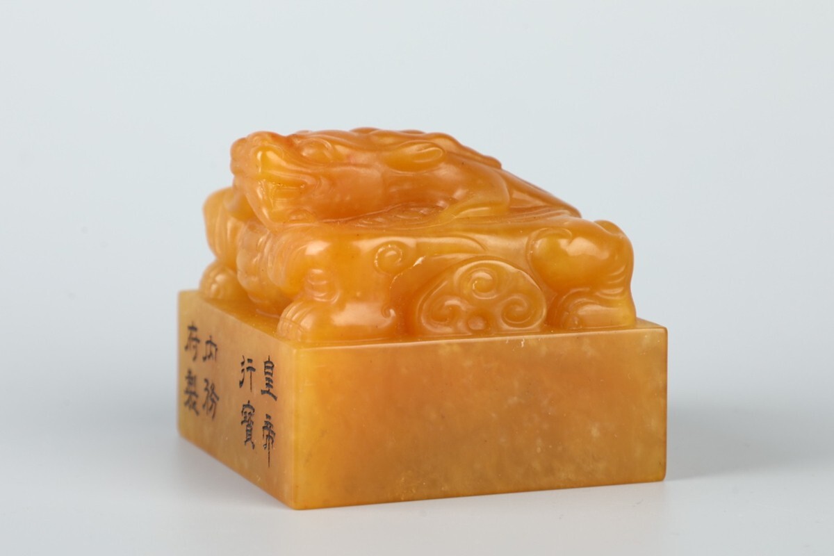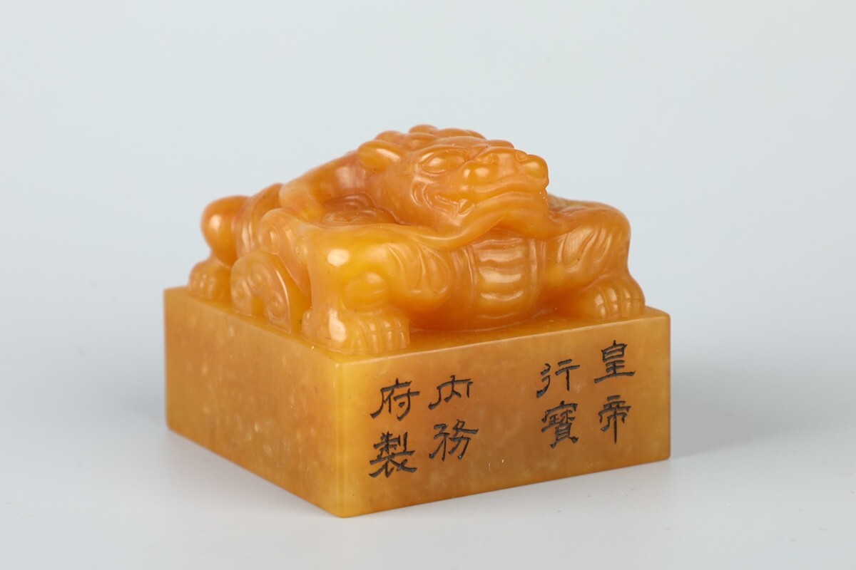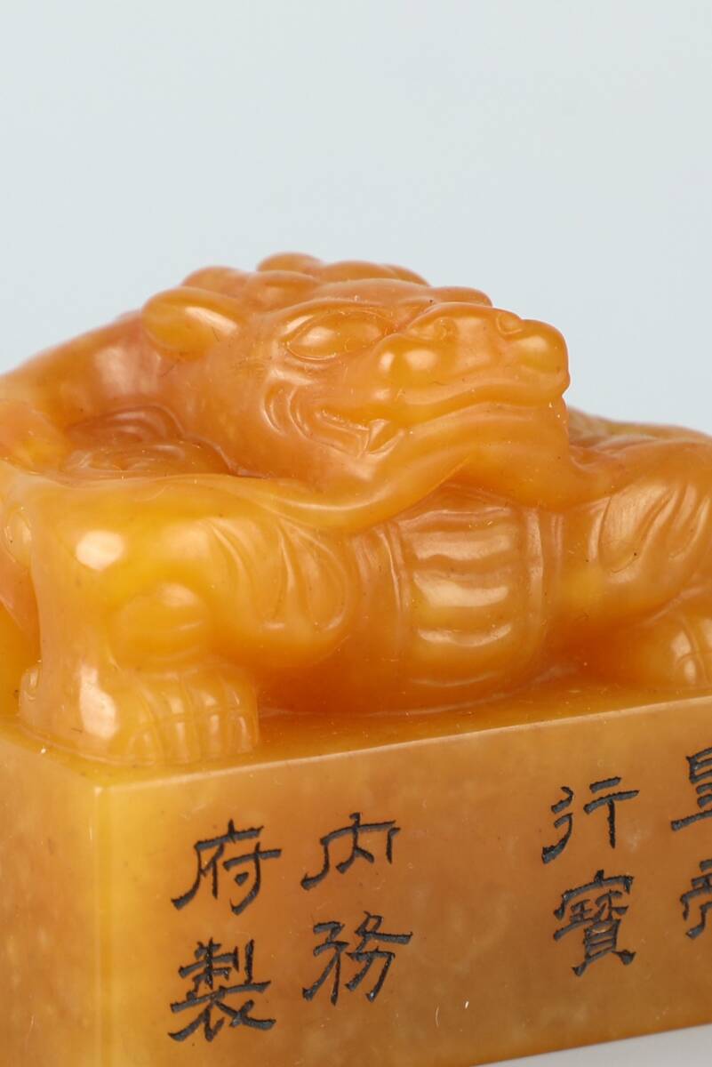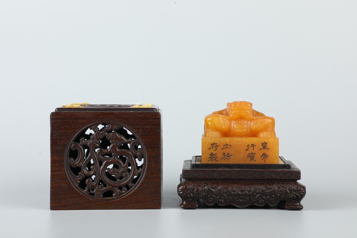 清代 内務府製 老寿山石 田黄石彫 皇帝行寶 龍鈕印章 紫檀盒裝【仁】極細工 手彫り 中国古賞物 古美術 蔵出