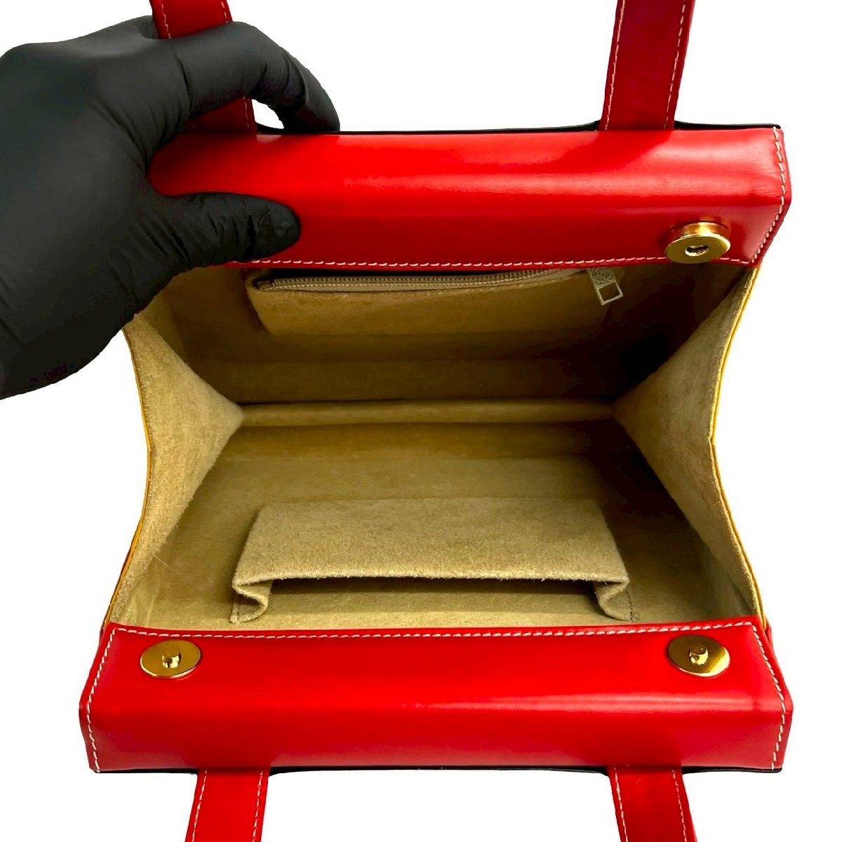 ほぼ未使用 LOEWE ロエベ ヴィンテージ ロゴ 型押し カーフ レザー 本革 ハンドバッグ ミニ トートバッグ ネイビー レッド 20741