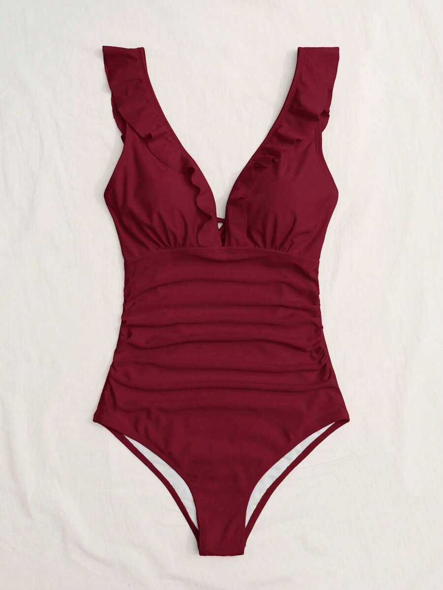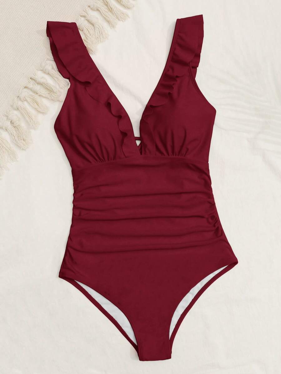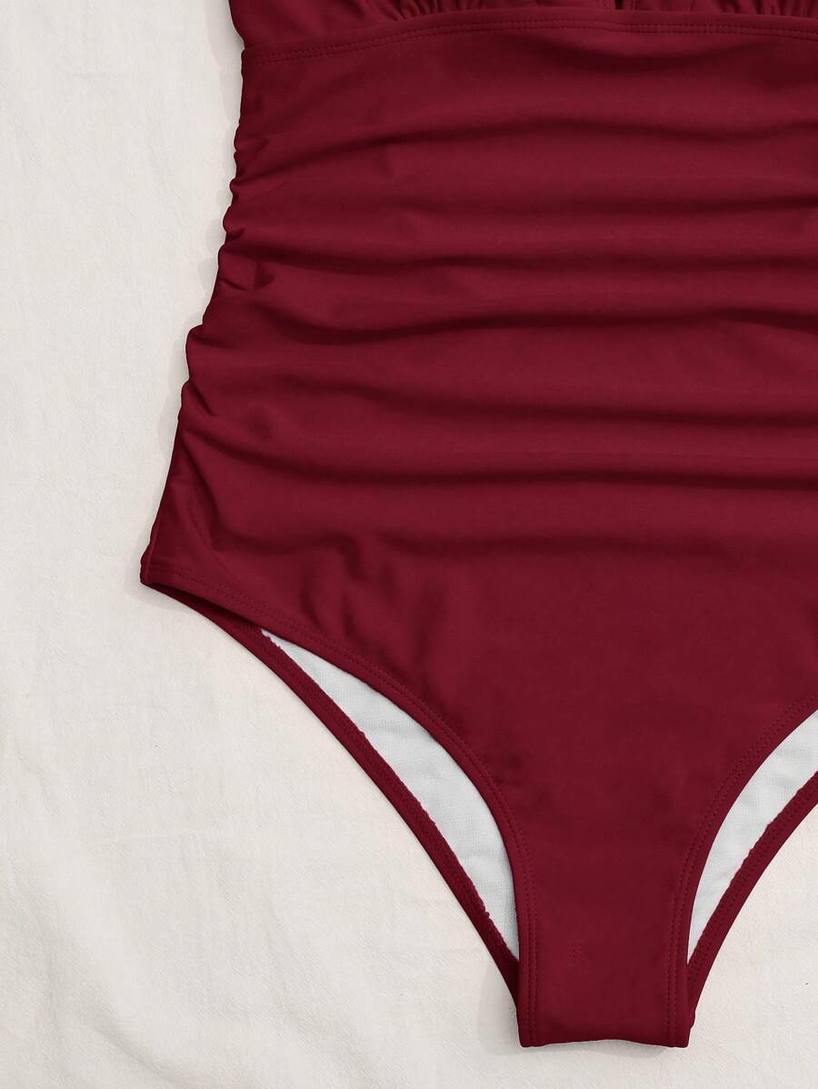 レディース 水着 ワンピース 女性用無地ひだ寄せプリーツワンピース水着、バケーションに適したファッショナブルなデザイン