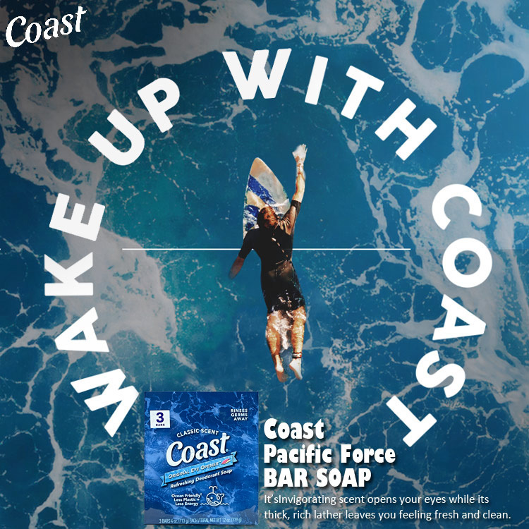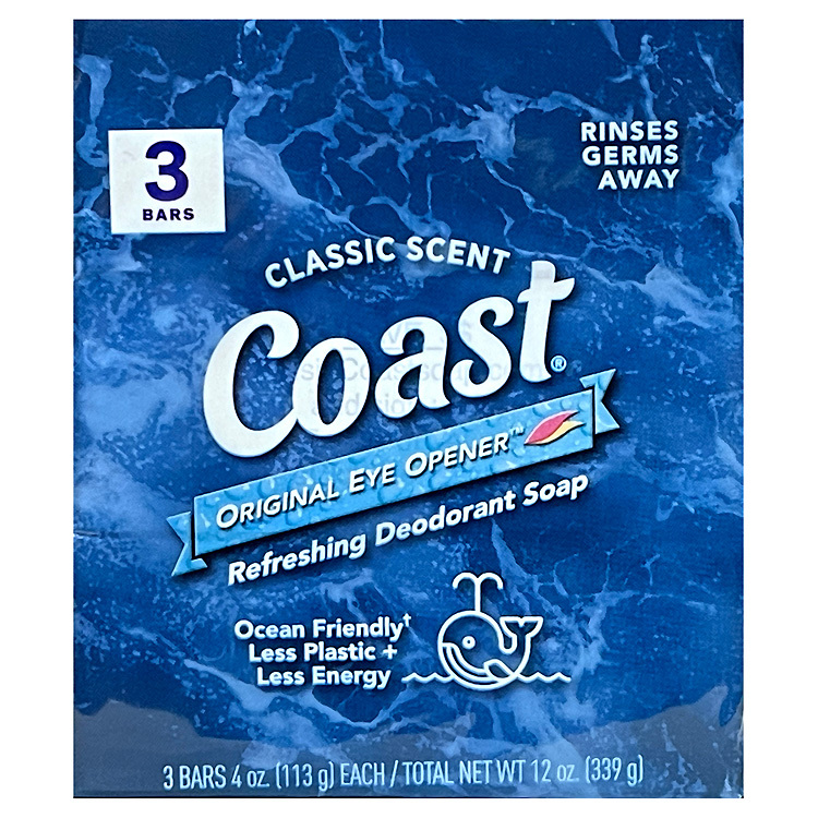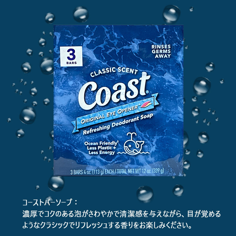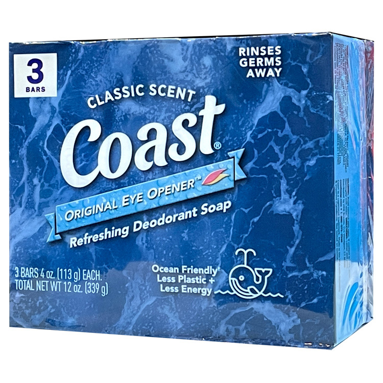とにかくよく売れる、みんな大好きなアメリカ製のリフレッシングデオドラント石けん「コースト固形石鹸 パシフィックフォース クラシックの香り 113g×3個パック」。