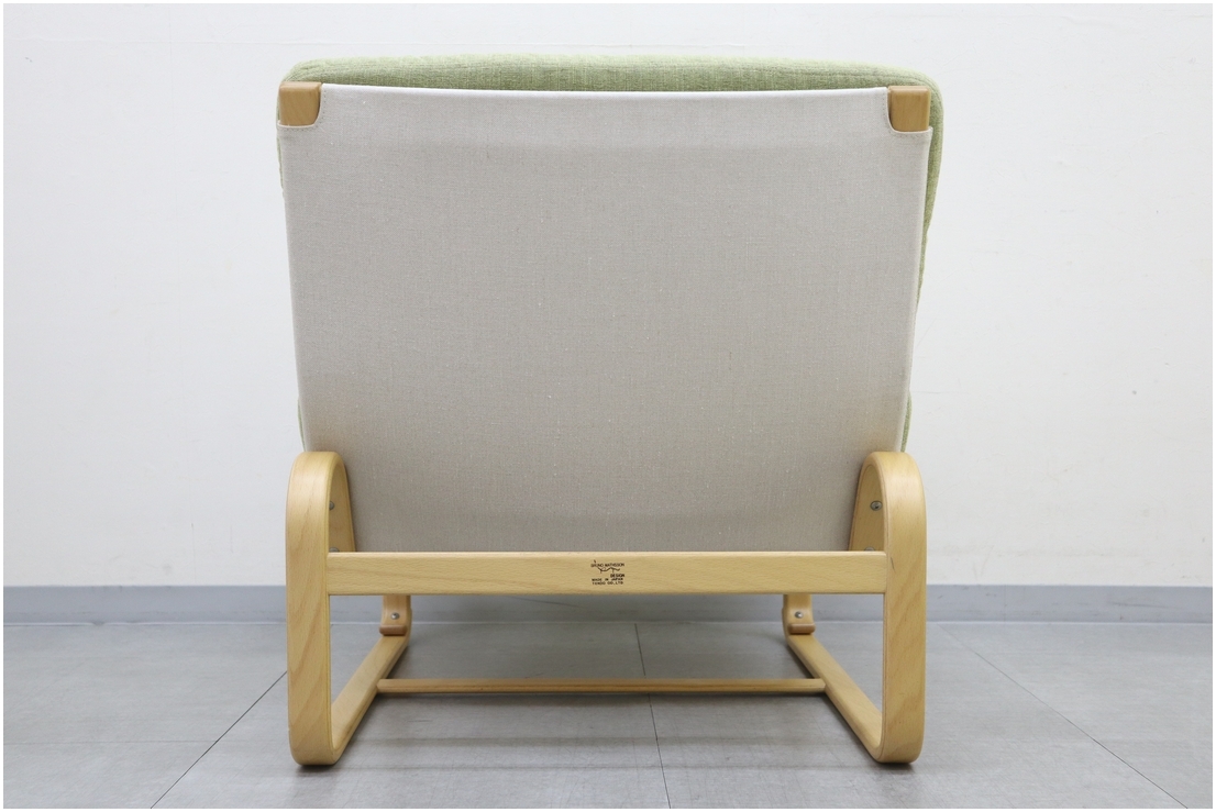 北欧を代表するデザイナー、ブルーノ・マットソンの手掛けた天童木工の 「Mathsson Series イージーチェア」 。ソリのような形状(床摺り構造)の脚によって床との設置面積が大きい脚部は、畳で暮らす日本の生活様式を意識して設計されたもの。床を傷めづらい形状で、フローリングはもちろん和室でもお使いいただけるデザインです。この細い木製フレームは天童木工のお得意の成形合板(プライウッド)技術が活かされています。マットソンのアイデアと天童木工の成形合板によってしっかりとした強度と驚異的な軽量化を実現しています。軽さのヒミツはフレームにキャンバスが張り渡された構造です。ハンモックのようなそのつくりによって軽さと快適な座り心地を両立しています。