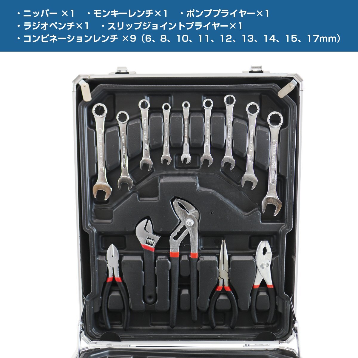 工具箱 工具セット 186pcs 持ち運び 工具ボックス アルミケース 車 バイク 自転車 整備 取付 ラチェット スパナ レンチ 家具