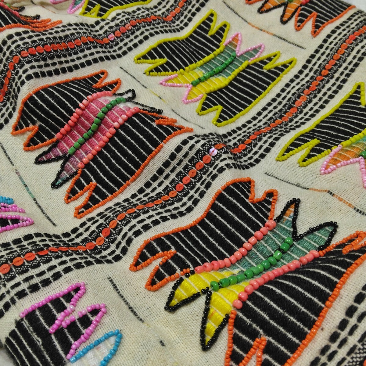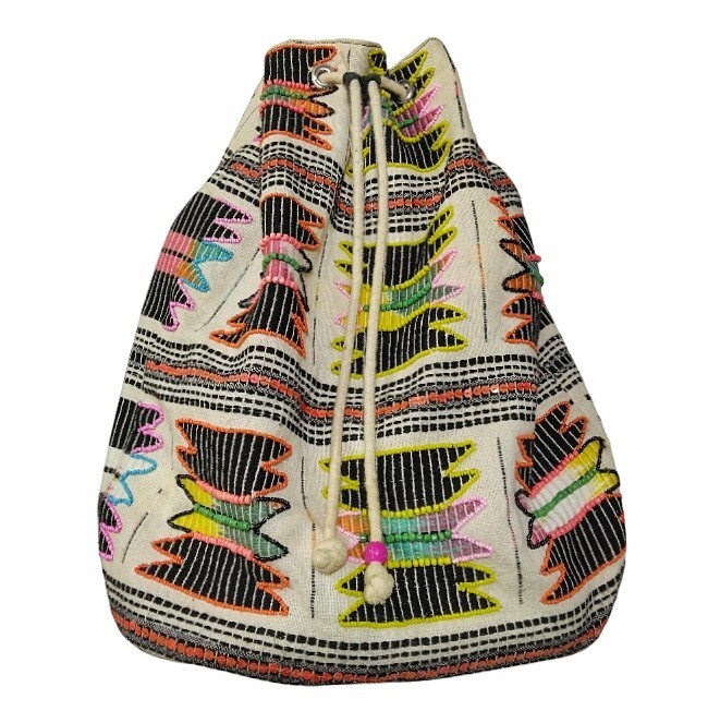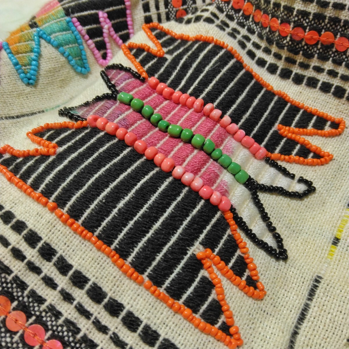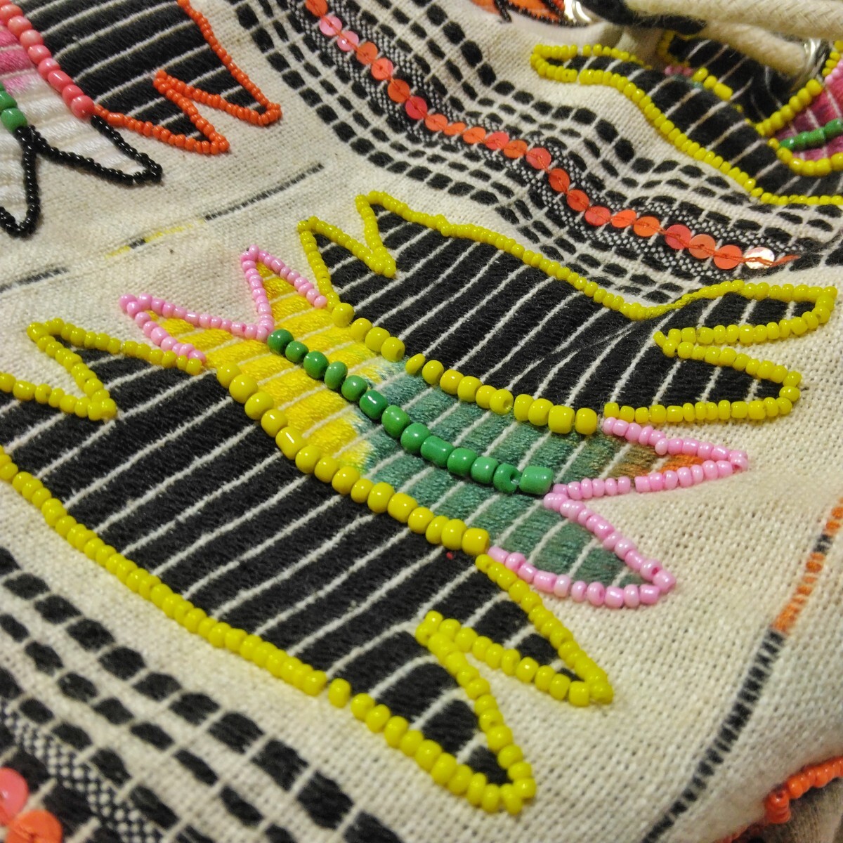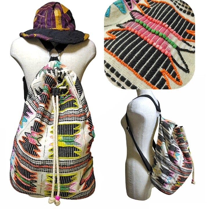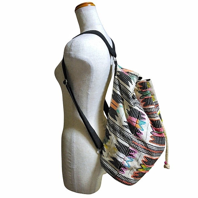カラフルなビーズ装飾とグラデーションの刺繍装飾が素敵なリュックです