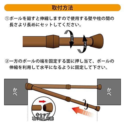 【在庫限りです】【SALE期間中】SunnyDayFabric木目調ブラウン巾120~200cm1本つっぱり棒Lテンションポール直径1.7cm