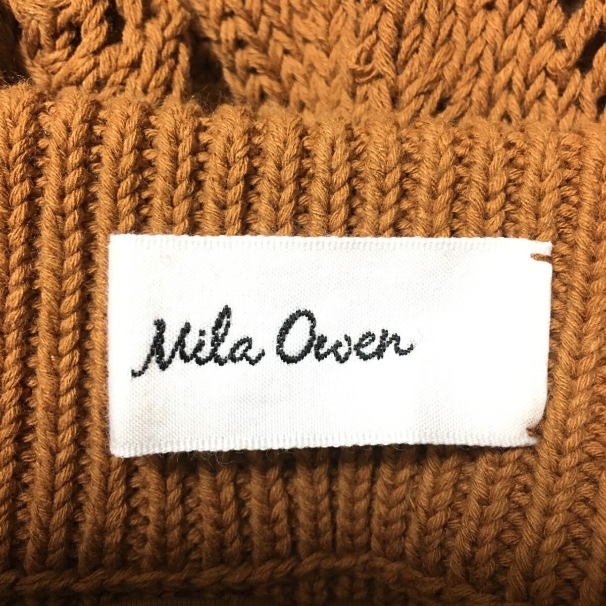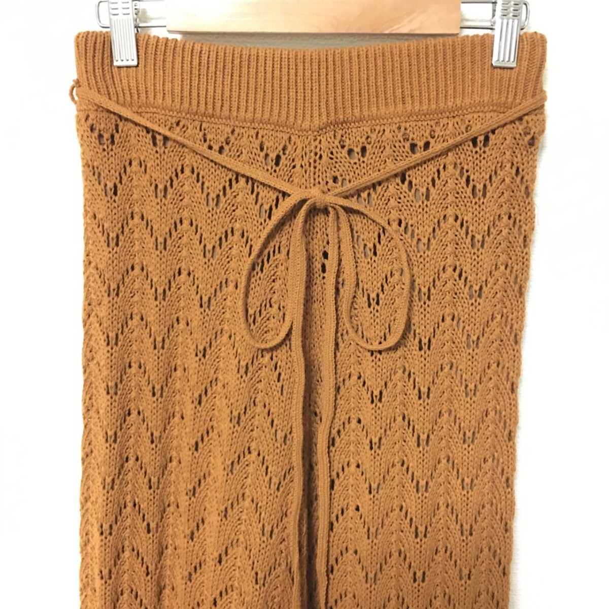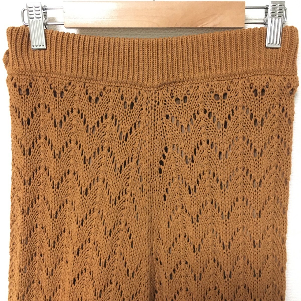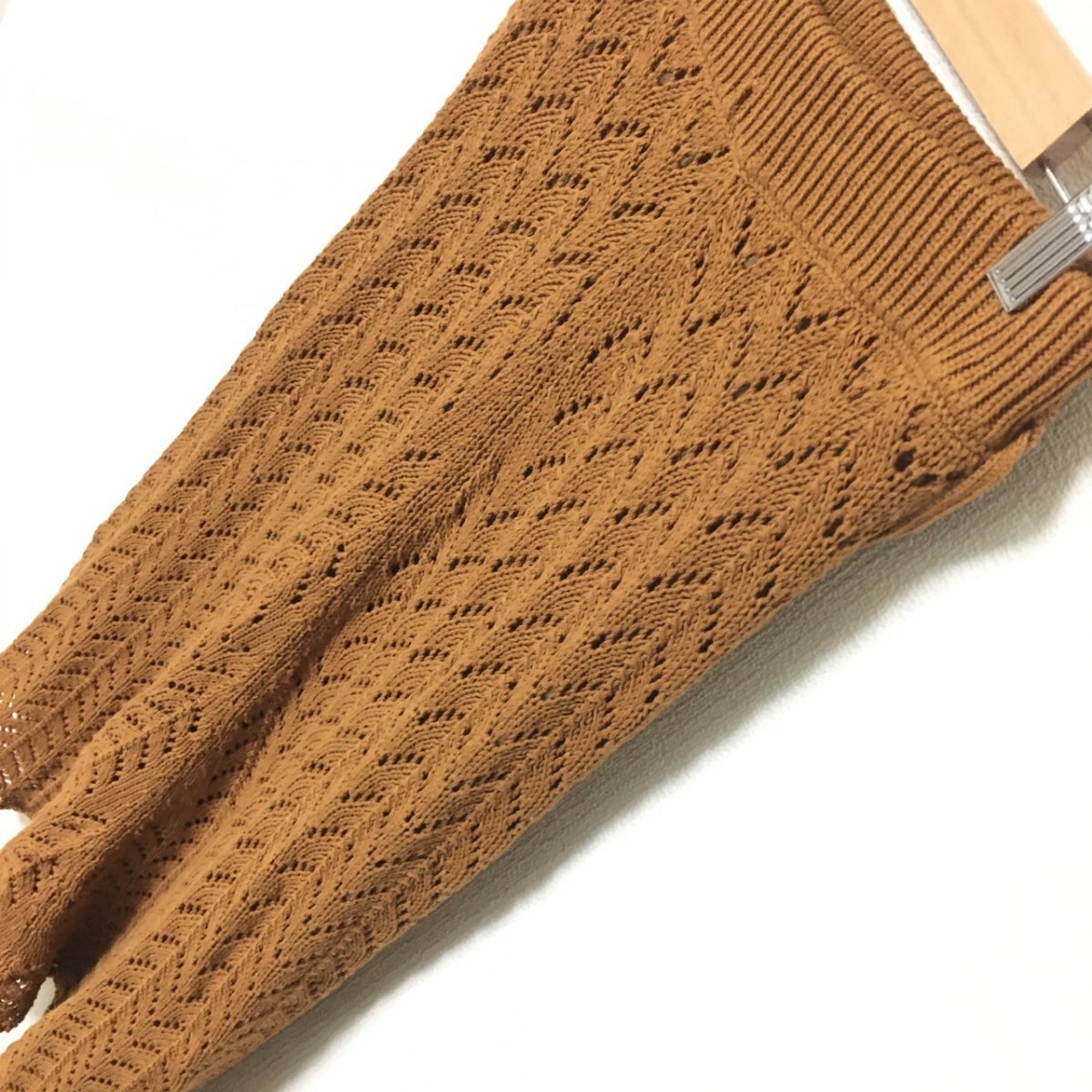 W147【Mila Owen】ミラオーウェン ニット ロング スカート 膝下丈 フレア レース シースルー ブラウン レディース サイズ 0 (S位)/fa