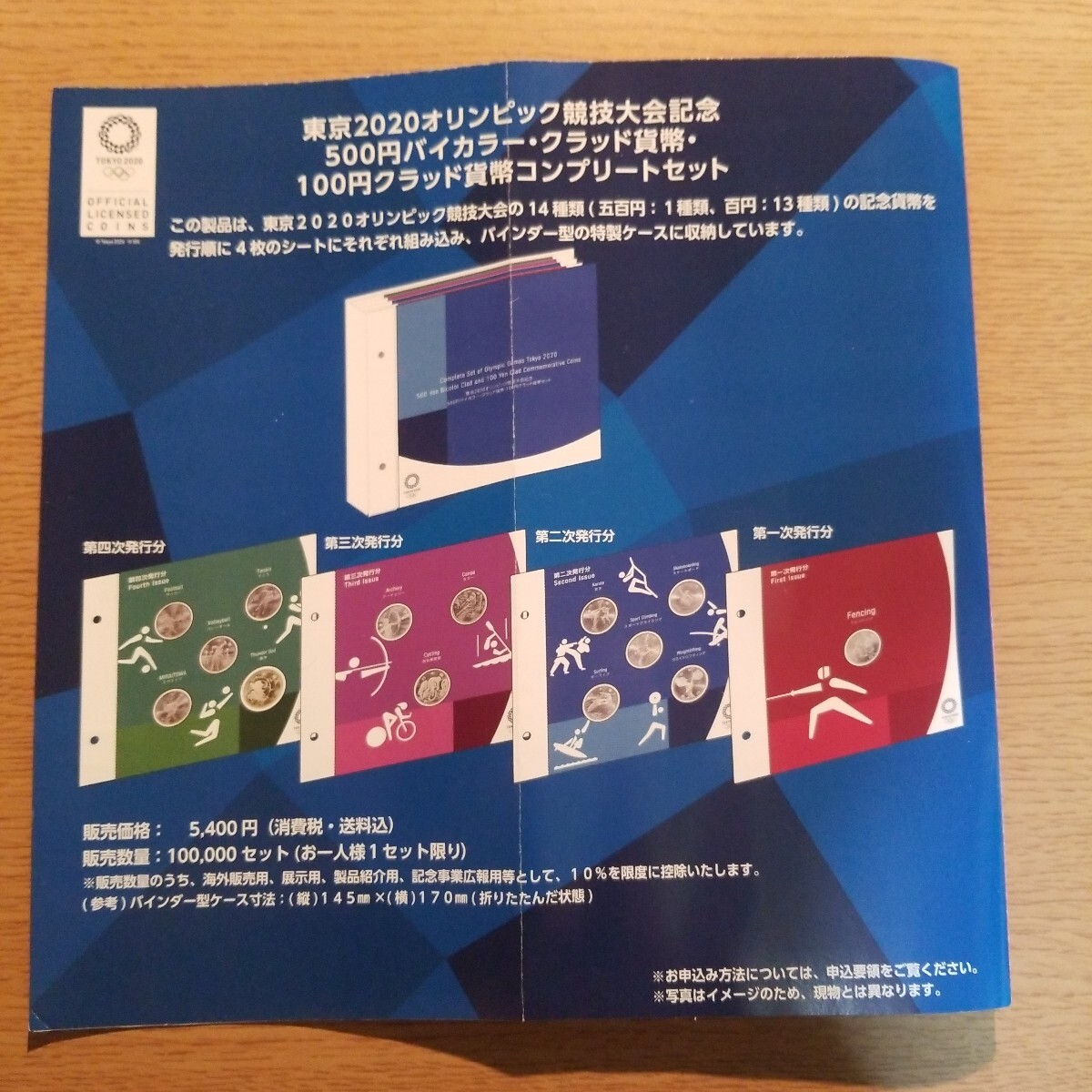 東京2020オリンピック 500円 100 円 バイカラー・クラッド貨幣コンプリートセット バインダー型の特製ケースに収納。