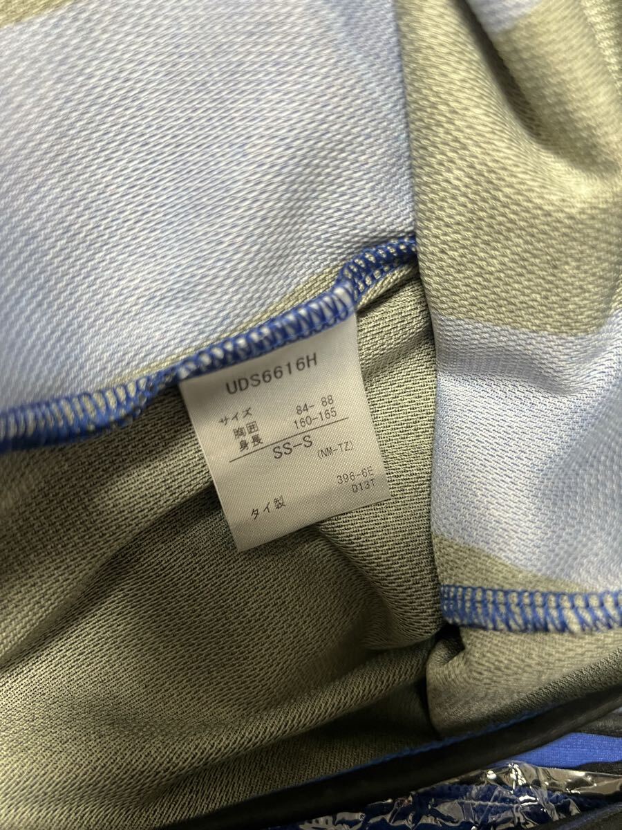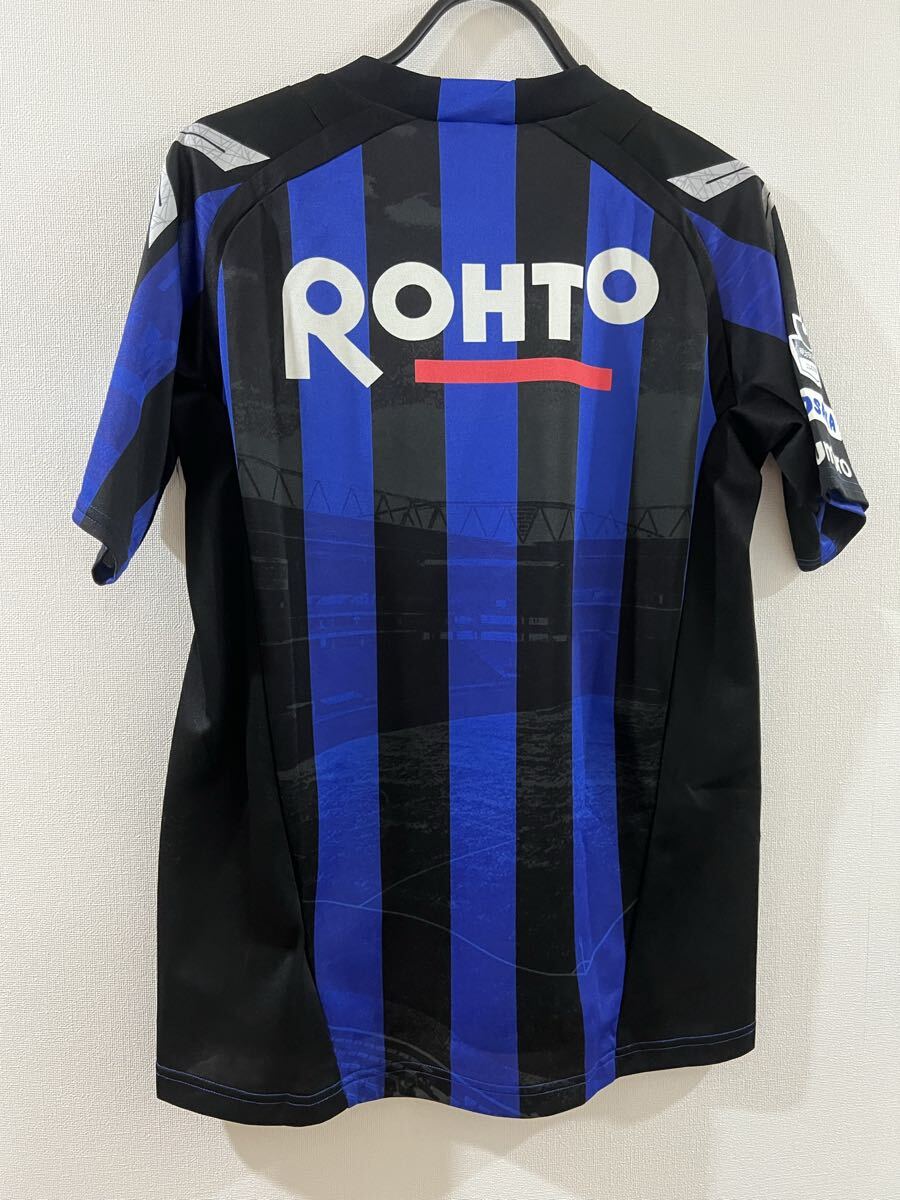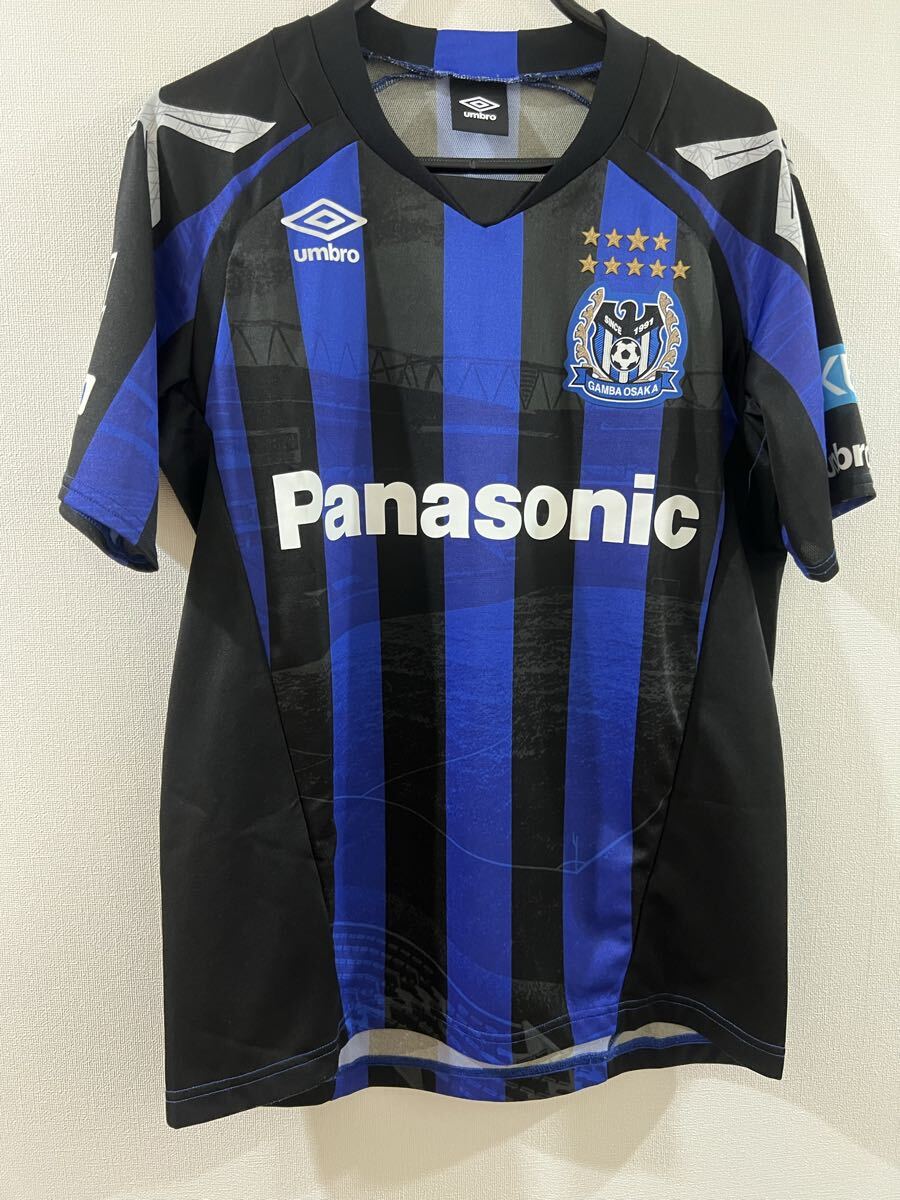 ガンバ大阪のUmbro製サッカー応援ユニフォーム、黒と青のストライプデザイン、サイズSS。
