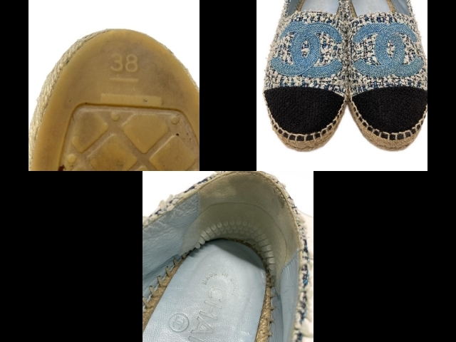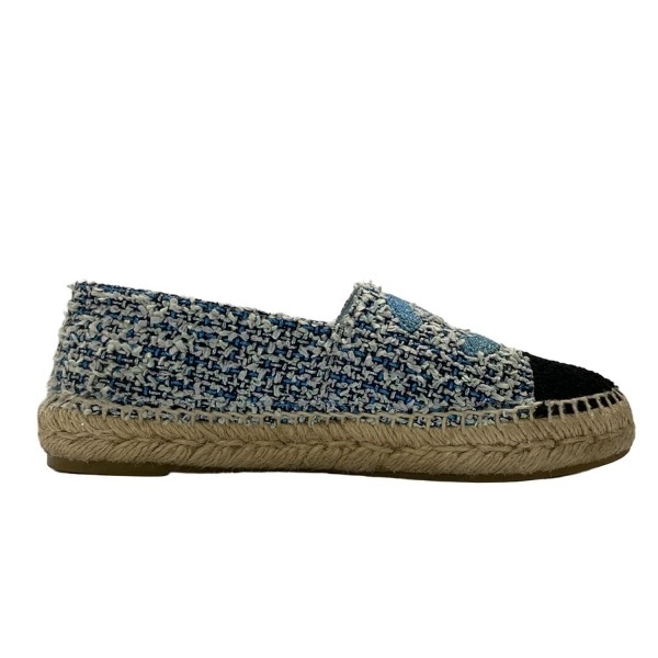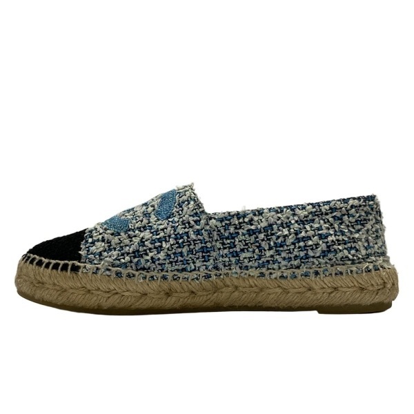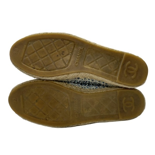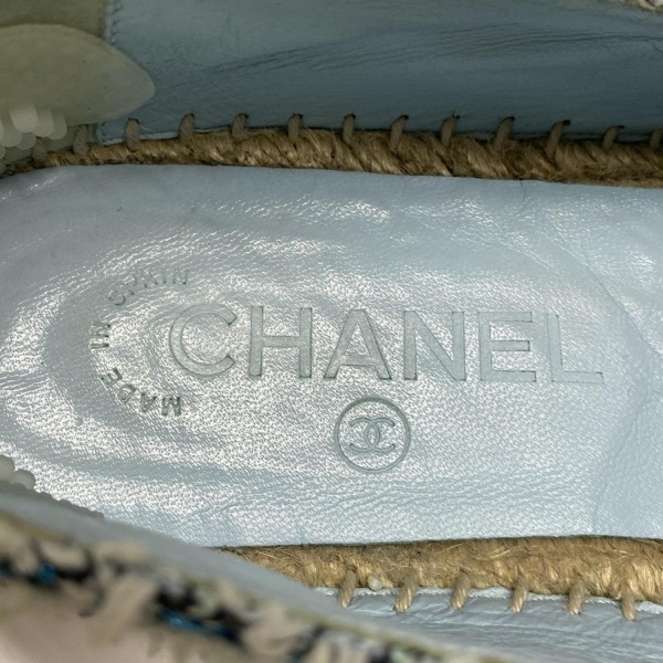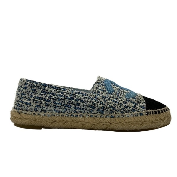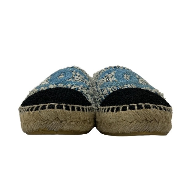 シャネル CHANEL フラットシューズ 38 G34546 - コットン、リネン ライトブルー×ブルー×ダークネイビー ココマーク 靴