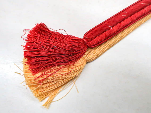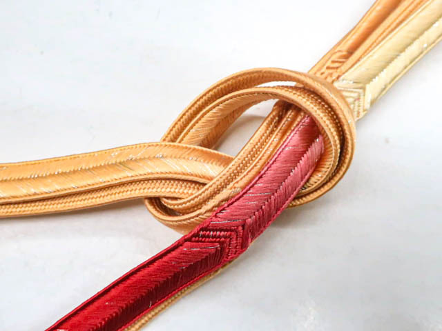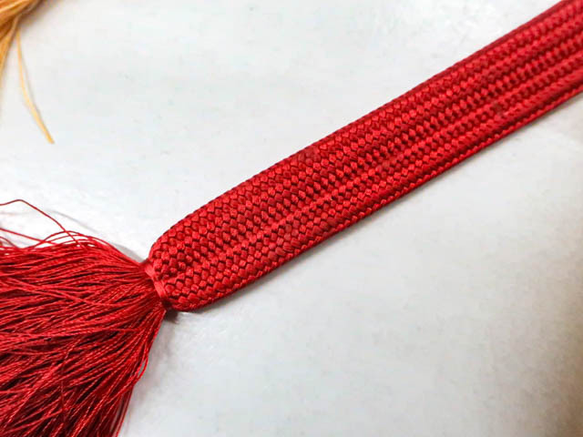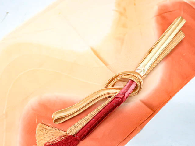 リサイクル商品のため、帯揚げにシミ、帯締めの房近く裏に薄汚れがございますが、ご使用頂けると存じます。 |