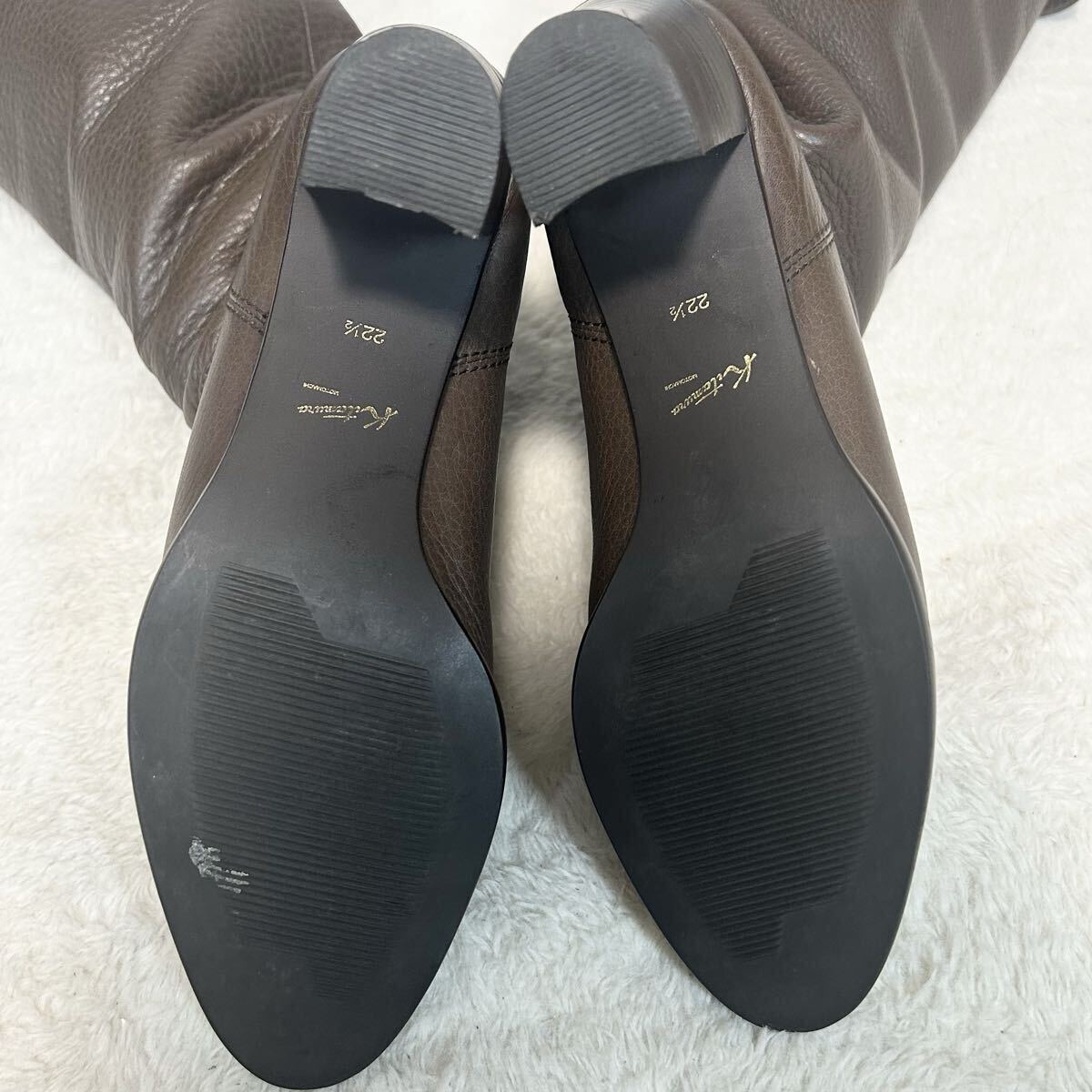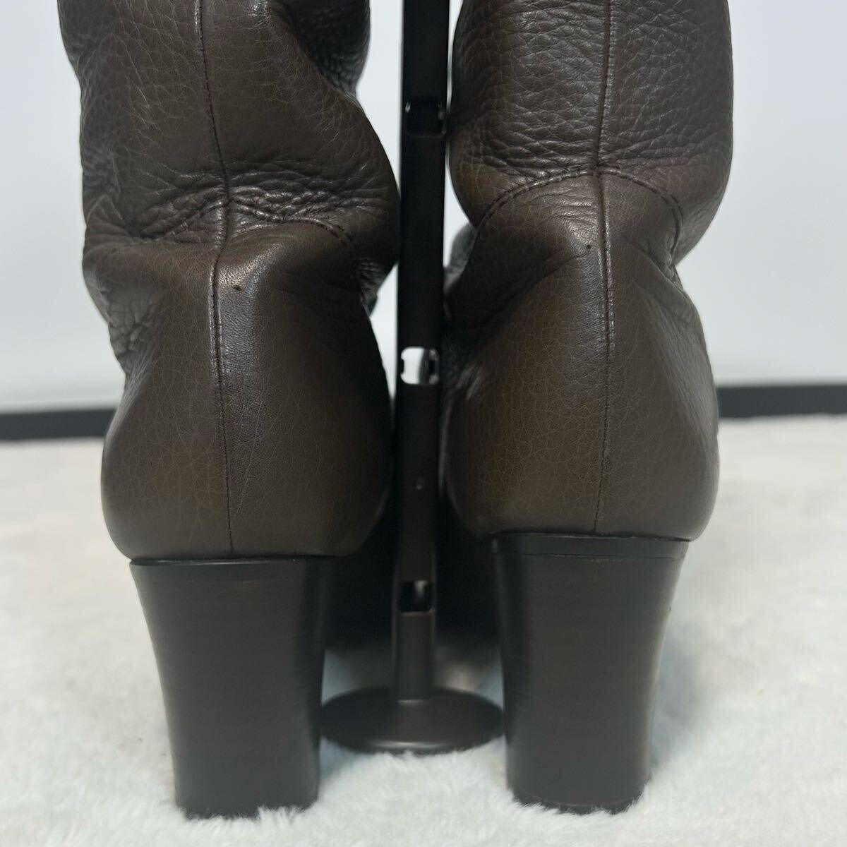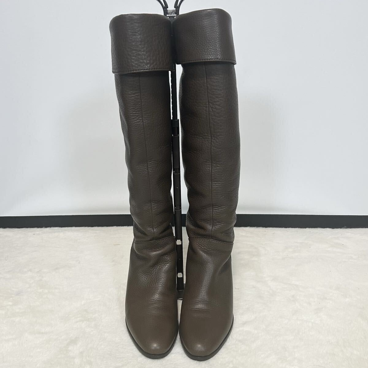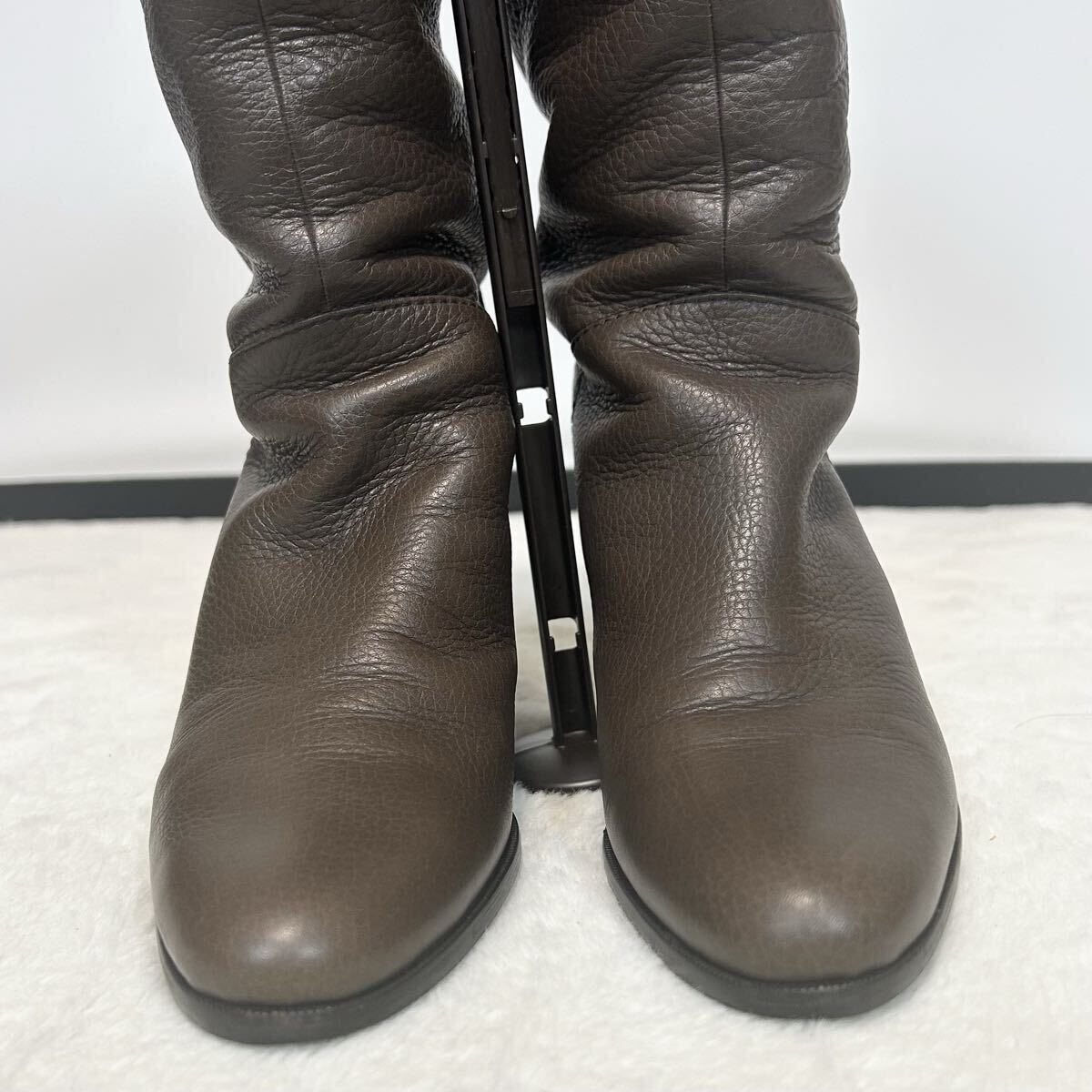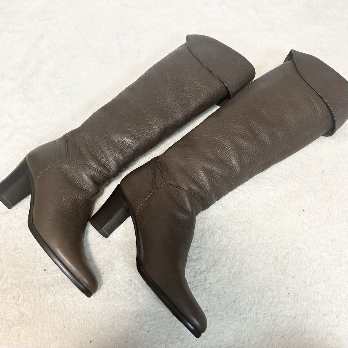 [アイテム] ロングブーツ ブラウン シボ革 レザー ヒール
