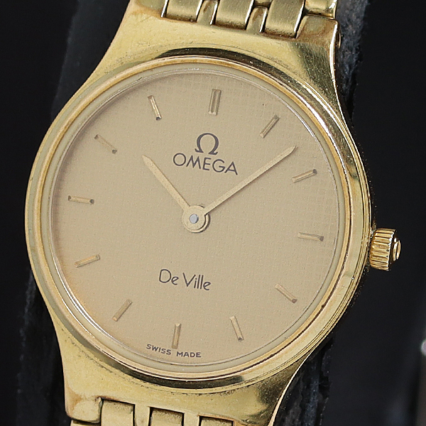 1円 稼働 オメガ デビル 1375 QZ ゴールド文字盤 レディース腕時計 0023100 9BKY SMZ