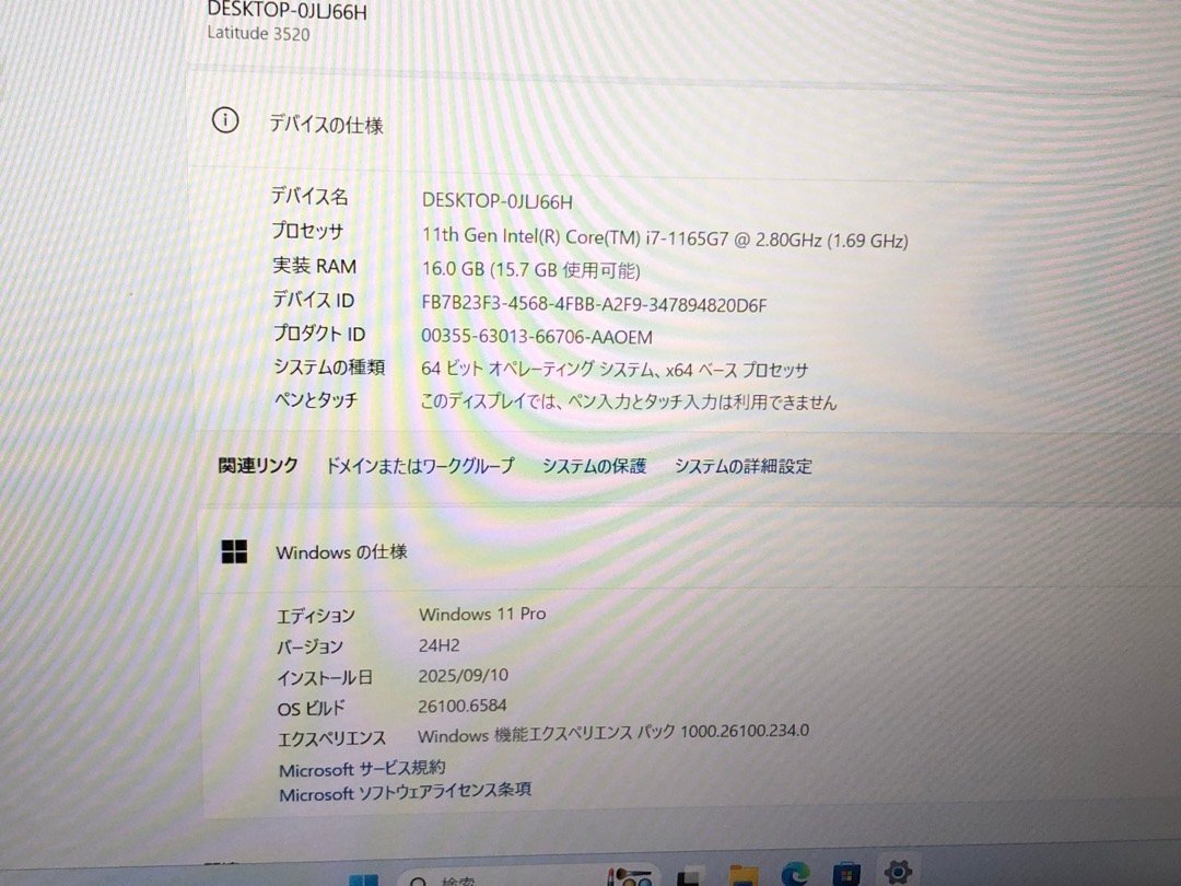 CPU | 11th Gen Intel(R) Core(TM) i7-1165G7 @ 2.80GHz | 光学式ドライブ | なし |